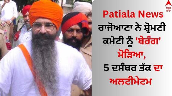 Patiala News: ਫਾਂਸੀ ਦੀ ਸਜ਼ਾ ਦਾ ਸਾਹਮਣਾ ਕਰ ਰਹੇ ਬਲਵੰਤ ਸਿੰਘ ਰਾਜੋਆਣਾ ਨੇ ਸ਼੍ਰੋਮਣੀ ਕਮੇਟੀ ਦੇ ਪ੍ਰਧਾਨ ਹਰਜਿੰਦਰ ਸਿੰਘ ਧਾਮੀ ਦੀ ਅਗਵਾਈ ਹੇਠ ਜੇਲ੍ਹ ਅੰਦਰ ਮੁਲਾਕਾਤ ਕਰਨ ਗਏ ਵਫਦ ਨੂੰ ਬੇਰੰਗ ਮੋੜ ਦਿੱਤਾ ਹੈ। ਸ਼੍ਰੋਮਣੀ ਕਮੇਟੀ ਦੇ ਵਫਦ ਨੇ ਪਟਿਆਲਾ ਦੀ ਕੇਂਦਰੀ ਜੇਲ੍ਹ ਵਿਖੇ ਰਾਜੋਆਣਾ ਨਾਲ ਮੁਲਾਕਾਤ ਕੀਤੀ ਪਰ ਰਾਜੋਆਣਾ ਸ਼੍ਰੋਮਣੀ ਕਮੇਟੀ ਵੱਲੋਂ ਦਾਇਰ ਕੀਤੀ ਰਹਿਮ ਦੀ ਅਪੀਲ ਵਾਪਸ ਕਰਵਾਉਣ ਲਈ ਬਜ਼ਿੱਦ ਰਹੇ। ਉਨ੍ਹਾਂ ਨੇ ਸ਼੍ਰੋਮਣੀ ਕਮੇਟੀ ਨੂੰ 5 ਦਸੰਬਰ ਤੱਕ ਦਾ ਅਲਟੀਮੇਟਮ ਦਿੰਦਿਆਂ ਸਪਸ਼ਟ ਕੀਤਾ ਹੈ ਕਿ ਜੇ 4 ਦਸੰਬਰ ਤੱਕ ਇਹ ਪਟੀਸ਼ਨ ਵਾਪਸ ਨਾ ਲਈ ਤਾਂ ਉਹ 5 ਦਸੰਬਰ ਤੋਂ ਭੁੱਖ ਹੜਤਾਲ ਸ਼ੁਰੂ ਕਰ ਦੇਣਗੇ।