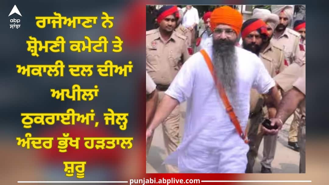 Rajoana Start Hunger Strike in jail: ਪਟਿਆਲਾ ਜੇਲ੍ਹ ਵਿੱਚ ਬੰਦ ਬਲਵੰਤ ਸਿੰਘ ਰਾਜੋਆਣਾ ਨੇ ਸ਼੍ਰੋਮਣੀ ਕਮੇਟੀ ਤੇ ਸ਼੍ਰੋਮਣੀ ਅਕਾਲੀ ਦਲ ਦੀਆਂ ਅਪੀਲਾਂ ਨੂੰ ਠੁਕਰਾ ਕੇ ਭੁੱਖ ਹੜਤਾਲ ਸ਼ੁਰੂ ਕਰ ਦਿੱਤੀ ਹੈ। ਪਟਿਆਲਾ ਦੀ ਕੇਂਦਰੀ ਜੇਲ੍ਹ ਵਿੱਚ 27 ਸਾਲਾਂ ਤੋਂ ਬੰਦ ਬਲਵੰਤ ਸਿੰਘ ਰਾਜੋਆਣਾ ਨੇ ਆਪਣੇ ਐਲਾਨ ਮੁਤਾਬਕ ਅੱਜ ਭੁੱਖ ਹੜਤਾਲ ਸ਼ੁਰੂ ਕਰ ਦਿੱਤੀ। ਉਸ ਨੇ ਜੇਲ੍ਹ ਪ੍ਰਸ਼ਾਸਨ ਵੱਲੋਂ ਦਿੱਤੀ ਸਵੇਰ ਦੀ ਰੋਟੀ ਨਹੀਂ ਫੜੀ।