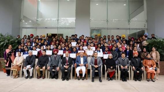 Punjab Raj Bhawan: ਜ਼ਿਲ੍ਹਾ ਫ਼ਾਜ਼ਿਲਕਾ ਦੇ ਹੋਣਹਾਰ ਵਿਦਿਆਰਥੀਆਂ ਵੱਲੋਂ ਆਪਣੀ ਕਾਬਲੀਅਤ ਦੇ ਅਧਾਰ ਤੇ ਵੱਖ ਵੱਖ ਖੇਤਰਾਂ ਵਿੱਚ ਮੱਲਾਂ ਮਾਰੀਆਂ ਜਾ ਰਹੀਆਂ ਹਨ। ਇਸ ਸਿਲਸਿਲੇ ਨੂੰ ਅੱਗੇ ਵਧਾਉਂਦਿਆਂ ਜ਼ਿਲ੍ਹਾ ਫ਼ਾਜ਼ਿਲਕਾ ਦੇ 17 ਹੋਣਹਾਰ ਵਿਦਿਆਰਥੀ ਜਿਹਨਾਂ ਨੇ ਸਾਲ 2022-2023 ਦੌਰਾਨ ਪੰਜਾਬ ਸਕੂਲ ਸਿੱਖਿਆ ਬੋਰਡ ਦੀ ਅੱਠਵੀਂ ਜਮਾਤ ਦੀ ਮੈਰਿਟ ਸੁੱਚੀ ਵਿੱਚ ਪਹਿਲੇ 150 ਅਤੇ ਦਸਵੀਂ ਦੀ ਮੈਰਿਟ ਸੂਚੀ ਵਿਚ ਪਹਿਲੇ 75 ਵਿਦਿਆਰਥੀਆਂ ਵਿੱਚ ਥਾਂ ਬਣਾਈ ਹੈ ਨੂੰ ਪੰਜਾਬ ਰਾਜ ਭਵਨ ਵਿੱਚ ਸਨਮਾਨਿਤ ਕੀਤਾ ਗਿਆ।