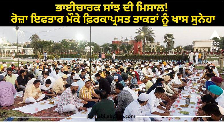 Sangrur News: ਮੁਸਲਿਮ ਫੈਡਰੇਸ਼ਨ ਆਫ਼ ਪੰਜਾਬ ਵੱਲੋਂ ਸਥਾਨਕ ਵੱਡੀ ਈਦਗਾਹ ਵਿੱਚ ਰੋਜ਼ਾ ਇਫ਼ਤਾਰ ਪਾਰਟੀ ਕੀਤੀ ਗਈ। ਇਸ ਵਿੱਚ ਸਥਾਨਕ ਵਿਧਾਇਕ ਡਾ. ਜਮੀਲ-ਉਰ-ਰਹਿਮਾਨ, ਹਲਕਾ ਅਮਰਗੜ੍ਹ ਦੇ ਵਿਧਾਇਕ ਜਸਵੰਤ ਸਿੰਘ ਗੱਜਣਮਾਜਰਾ, ਮੁਫ਼ਤੀ ਇਰਤਕਾ-ਉਲ-ਹਸਨ ਕਾਂਧਲਵੀ (ਮੁਫ਼ਤੀ ਏ ਆਜ਼ਮ ਪੰਜਾਬ), ਮੁਹੰਮਦ ਯੂਨਸ, ਅਰਸ਼ਦ ਡਾਲੀ, ਸਤਨਾਮ ਪੰਜਾਬੀ (ਪੰਜਾਬੀ ਗਾਇਕ) ਨੇ ਸ਼ਿਰਕਤ ਕੀਤੀ।