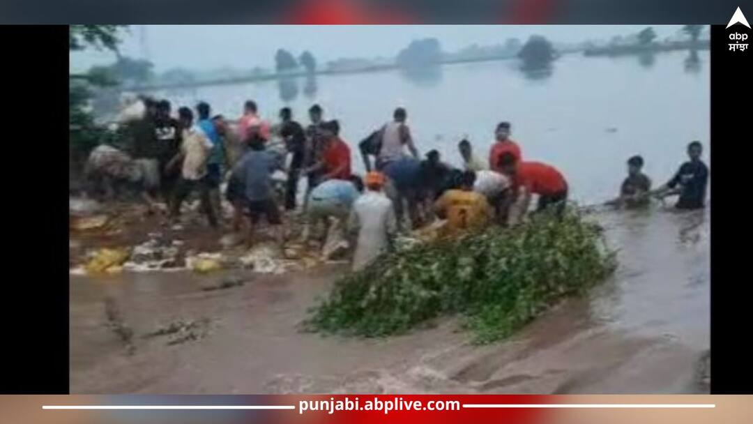 Flood in Punjab: ਬਾਰਸ਼ ਤੋਂ ਬਾਅਦ ਹੜ੍ਹ ਪੰਜਾਬ ਅੰਦਰ ਤਬਾਹੀ ਮਚਾ ਰਹੇ ਹਨ। ਸੰਗਰੂਰ ਦੇ ਮੂਨਕ ਇਲਾਕੇ 'ਚ ਘੱਗਰ ਦਰਿਆ ਦਾ ਬੰਨ੍ਹ ਦੋ ਥਾਵਾਂ 'ਤੇ ਟੁੱਟ ਗਿਆ ਹੈ। ਬੀਤੀ ਰਾਤ ਦਰਿਆ ਖਤਰੇ ਦੇ ਨਿਸ਼ਾਨ ਤੋਂ ਦੋ ਫੁੱਟ ਉੱਪਰ ਸੀ। ਇਸ ਮਗਰੋਂ ਦੋ ਥਾਵਾਂ 'ਤੇ ਬੰਨ੍ਹ ਟੁੱਟ ਗਿਆ। ਇਸ ਨਾਲ ਆਲੇ-ਦੁਆਲੇ ਦੇ ਇਲਾਕੇ 'ਚ ਤੇਜ਼ੀ ਨਾਲ ਪਾਣੀ ਵਧ ਰਿਹਾ ਹੈ।