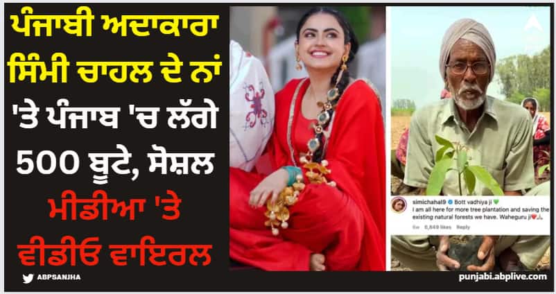 500 Tress Planted In Simi Chahal Name: ਪੰਜਾਬੀ ਅਦਾਕਾਰਾ ਸਿੰਮੀ ਚਾਹਲ ਦਾ ਨਾਮ ਇੱਕ ਵਾਰ ਫਿਰ ਤੋਂ ਸੁਰਖੀਆਂ 'ਚ ਹੈ। ਅਦਾਕਾਰਾ ਦੇ ਨਾਮ 'ਤੇ ਪੰਜਾਬ 'ਚ ਹਾਲ ਹੀ 'ਚ 500 ਬੂਟੇ ਲਾਏ ਗਏ ਹਨ। ਜੀ ਹਾਂ, ਪੰਜਾਬ ਦੀ ਕਿਸੇ ਜਗ੍ਹਾ 'ਤੇ ਰਾਊਂਡ ਗਲਾਸ ਫਾਊਂਡੇਸ਼ਨ ਨਾਮ ਦੀ ਐਨਜੀਓ ਵੱਲੋਂ 500 ਬੂਟੇ ਸਿੰਮੀ ਚਾਹਲ ਦੇ ਨਾਮ 'ਤੇ ਲਗਾਏ ਗਏ ਹਨ।