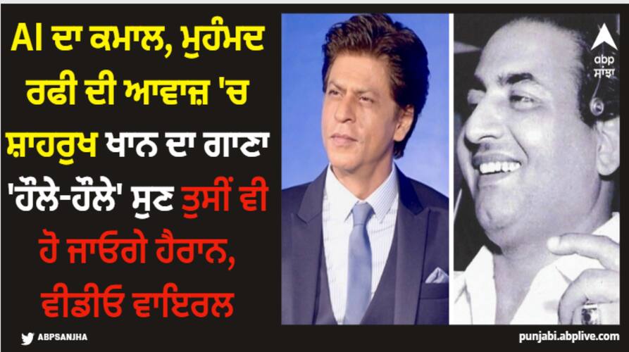 ਹਾਲ ਹੀ 'ਚ ਇੱਕ ਵੀਡੀਓ ਸੋਸ਼ਲ ਮੀਡੀਆ 'ਤੇ ਖੂਬ ਵਾਇਰਲ ਹੋ ਰਿਹਾ ਹੈ, ਜਿਸ ਵਿੱਚ ਸ਼ਾਹਰੁਖ ਖਾਨ ਦਾ ਸੁਪਰਹਿੱਟ ਗਾਣਾ 'ਹੌਲੇ ਹੌਲੇ ਹੋ ਜਾਏਗਾ ਪਿਆਰ' ਮੁਹੰਮਦ ਰਫੀ ਦੀ ਆਵਾਜ਼ 'ਚ ਸੁਣਿਆ ਜਾ ਸਕਦਾ ਹੈ। ਇਹ ਕਮਾਲ ਦੀ ਵੀਡੀਓ ਦੇਖ ਬਾਲੀਵੁੱਡ ਇੰਡਸਟਰੀ ਵੀ ਹੈਰਾਨ ਪਰੇਸ਼ਾਨ ਹੈ। ਸੋਨੂੰ ਨਿਗਮ ਤੋਂ ਲੈਕੇ ਹੋਰ ਕਈ ਦਿੱਗਜ ਗਾਇਕਾਂ ਤੇ ਸੰਗੀਤਕਾਰਾਂ ਨੇ ਇਸ ਵੀਡੀਓ 'ਤੇ ਆਪਣੀ ਪ੍ਰਤੀਕਿਿਰਿਆ ਦਿੱਤੀ ਹੈ। ਤੁਸੀਂ ਵੀ ਇਹ ਗਾਣਾ ਸੁਣ ਹੋ ਜਾਓਗੇ ਹੈਰਾਨ: