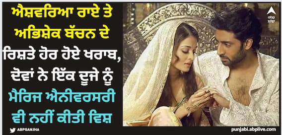 Aishwarya Rai Abhishek bachchan Marriage Anniversary: ਅਭਿਸ਼ੇਕ ਬੱਚਨ ਅਤੇ ਐਸ਼ਵਰਿਆ ਰਾਏ ਵੀ ਬਾਲੀਵੁੱਡ ਦੀਆਂ ਆਦਰਸ਼ ਜੋੜੀਆਂ ਵਿੱਚੋਂ ਇੱਕ ਹਨ। ਉਨ੍ਹਾਂ ਦੀ ਲਵ ਸਟੋਰੀ ਫਿਲਮ ਦੇ ਸੈੱਟ ਦੇ ਦੌਰਾਨ ਸ਼ੁਰੂ ਹੋਈ ਅਤੇ ਕੁਝ ਸਾਲਾਂ ਵਿੱਚ ਹੀ ਉਨ੍ਹਾਂ ਨੇ ਵਿਆਹ ਕਰ ਲਿਆ। ਐਸ਼ਵਰਿਆ ਅਤੇ ਅਭਿਸ਼ੇਕ ਵੀ ਪਰਿਵਾਰ ਨਾਲ ਵੱਖ-ਵੱਖ ਤਿਉਹਾਰਾਂ ਦੀਆਂ ਤਸਵੀਰਾਂ ਸੋਸ਼ਲ ਮੀਡੀਆ 'ਤੇ ਸ਼ੇਅਰ ਕਰਦੇ ਰਹਿੰਦੇ ਸਨ। ਕੁੱਲ ਮਿਲਾ ਕੇ ਦੋਹਾਂ ਨੇ ਇਕ-ਦੂਜੇ ਦੇ ਪਰਿਵਾਰ ਨੂੰ ਬਹੁਤ ਇੱਜ਼ਤ ਦਿੱਤੀ। ਅਜਿਹਾ ਅੱਜ ਵੀ ਹੋ ਸਕਦਾ ਹੈ ਪਰ ਪਿਛਲੇ ਕੁਝ ਮਹੀਨਿਆਂ ਤੋਂ ਕਿਹਾ ਜਾ ਰਿਹਾ ਹੈ ਕਿ ਅਭਿਸ਼ੇਕ ਅਤੇ ਐਸ਼ਵਰਿਆ ਵਿਚਾਲੇ ਸਭ ਠੀਕ ਨਹੀਂ ਹੈ।