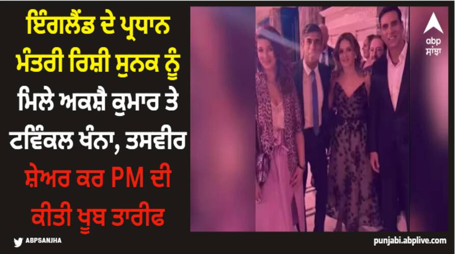 Akshay Twinkle meets Rishi Sunak: ਬਾਲੀਵੁੱਡ ਦੇ ਖਿਲਾੜੀ ਯਾਨੀ ਅਕਸ਼ੈ ਕੁਮਾਰ ਇਨ੍ਹੀਂ ਦਿਨੀਂ ਆਪਣੇ ਪਰਿਵਾਰ ਨਾਲ ਲੰਡਨ ਵਿੱਚ ਹਨ। ਹਾਲ ਹੀ 'ਚ ਅਦਾਕਾਰਾ ਟਵਿੰਕਲ ਖੰਨਾ ਨੇ ਇੰਸਟਾ 'ਤੇ ਇਕ ਵੀਡੀਓ ਸ਼ੇਅਰ ਕੀਤੀ ਹੈ। ਜਿਸ 'ਚ ਉਨ੍ਹਾਂ ਨੇ ਬ੍ਰਿਟਿਸ਼ ਪੀਐੱਮ ਰਿਸ਼ੀ ਸੁਨਕ ਨਾਲ ਮੁਲਾਕਾਤ ਕੀਤੀ ਹੈ। ਇਸ ਵੀਡੀਓ ਦੀਆਂ ਕੁਝ ਝਲਕੀਆਂ ਇੰਟਰਨੈੱਟ 'ਤੇ ਕਾਫੀ ਵਾਇਰਲ ਹੋ ਰਹੀਆਂ ਹਨ।
