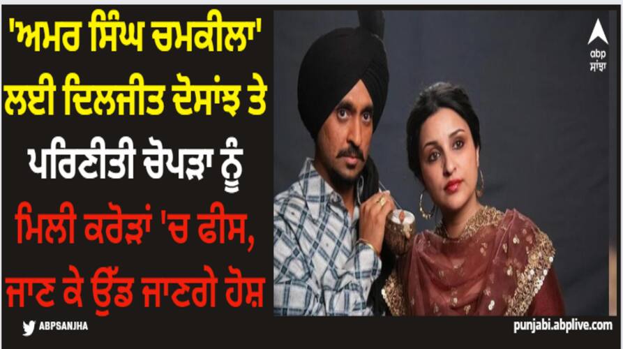 ਪਰ ਕੀ ਤੁਹਾਨੂੰ ਪਤਾ ਹੈ ਕਿ ਦਿਲਜੀਤ ਤੇ ਪਰਿਣੀਤੀ ਨੇ ਚਮਕੀਲਾ ਤੇ ਅਮਰਜੋਤ ਬਣਨ ਲਈ ਕਿੰਨੀ ਫੀਸ ਚਾਰਜ ਕੀਤੀ ਹੈ? ਜੇ ਨਹੀਂ ਤਾਂ ਆਓ ਤੁਹਾਨੂੰ ਦੱਸਦੇ ਹਾਂ। ਇਹ ਤਾਂ ਸਭ ਨੇ ਦੇਖਿਆ ਹੈ ਕਿ ਦਿਲਜੀਤ ਤੇ ਪਰਿਣੀਤੀ ਨੇ ਚਮਕੀਲੇ ਤੇ ਅਮਰਜੋਤ ਦਾ ਕਿਰਦਾਰ ਕਿੰਨੀ ਬਰੀਕੀ ਤੇ ਖੂਬਸੂਰਤੀ ਨਾਲ ਨਿਭਾਇਆ ਹੈ। ਇਸ ਫਿਲਮ ਲਈ ਦਿਲਜੀਤ ਦੋਸਾਂਝ ਨੇ ਇੰਨੀਂ ਜ਼ਿਆਦਾ ਮੇਹਨਤ ਕੀਤੀ ਹੈ ਜੋ ਕਿ ਫਿਲਮ ਦੇਖ ਕੇ ਪਤਾ ਲੱਗਦਾ ਹੈ। ਦਿਲਜੀਤ ਨੇ ਇਸ ਫਿਲਮ ਖੁਦ ਆਪਣੀ ਆਵਾਜ਼ 'ਚ 15 ਗਾਣੇ ਰਿਕਾਰਡ ਕੀਤੇ ਸੀ। ਦੂਜੇ ਪਾਸੇ ਪਰਿਣੀਤੀ ਨੇ ਵੀ ਫਿਲਮ ਲਈ ਖੁਦ ਆਪਣੇ ਗਾਣੇ ਰਿਕਾਰਡ ਕੀਤੇ। ਉਨ੍ਹਾਂ ਨੇ ਚਮਕੀਲੇ ਤੇ ਅਮਰਜੋਤ ਦੀ ਦਾਸਤਾਂ ਨੂੰ ਪਰਦੇ 'ਤੇ ਇੱਕ ਵਾਰ ਫਿਰ ਜ਼ਿੰਦਾ ਕਰ ਦਿੱਤਾ ਹੈ।
