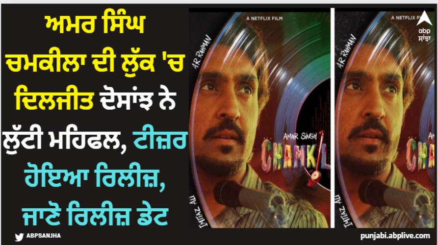 ਦਿਲਜੀਤ ਦੋਸਾਂਝ ਦੀ ਫਿਲਮ 'ਅਮਰ ਸਿੰਘ ਚਮਕੀਲਾ' ਦਾ ਟੀਜ਼ਰ ਹੋਇਆ ਰਿਲੀਜ਼ਤੁਹਾਨੂੰ ਦੱਸ ਦਈਏ ਕਿ ਅਮਰ ਸਿੰਘ ਚਮਕੀਲਾ ਪੰਜਾਬੀ ਇੰਡਸਟਰੀ ਦਾ ਬਹੁਤ ਵੱਡਾ ਨਾਮ ਸੀ। ਇੱਕ ਸਮਾਂ ਸੀ ਜਦੋਂ ਉਨ੍ਹਾਂ ਦਾ ਨਾਮ ਇੰਡਸਟਰੀ ਵਿੱਚ ਮਸ਼ਹੂਰ ਸੀ। ਉਹ ਪੰਜਾਬ ਦਾ ਸਭ ਤੋਂ ਵੱਧ ਫੀਸ ਲੈਣ ਵਾਲਾ ਕਲਾਕਾਰ ਸੀ। ਪੰਜਾਬ ਦੇ ਇਸ ਸੁਪਰਸਟਾਰ ਦੀ ਦਰਦਨਾਕ ਕਹਾਣੀ ਇਸ ਫਿਲਮ 'ਚ ਦਿਖਾਈ ਜਾਵੇਗੀ। ਤੁਹਾਨੂੰ ਦੱਸ ਦੇਈਏ ਕਿ ਇਹ ਫਿਲਮ OTT ਪਲੇਟਫਾਰਮ 'ਤੇ ਨੈੱਟਫਲਿਕਸ (Netflix) 'ਤੇ ਦਸਤਕ ਦੇਵੇਗੀ। ਇਸ ਨੈੱਟਫਲਿਕਸ ਫਿਲਮ ਦਾ ਨਿਰਦੇਸ਼ਨ ਇਮਤਿਆਜ਼ ਅਲੀ ਨੇ ਕੀਤਾ ਹੈ, ਜੋ 12 ਫਰਵਰੀ ਨੂੰ ਰਿਲੀਜ਼ ਹੋ ਰਹੀ ਹੈ।