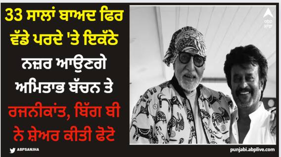 Amitabh Bachchan And Rajinikanth Film: ਅਮਿਤਾਭ ਬੱਚਨ ਬਾਲੀਵੁੱਡ ਦੇ ਸ਼ਹਿਨਸ਼ਾਹ ਹਨ ਜਦੋਂ ਕਿ ਰਜਨੀਕਾਂਤ ਦੱਖਣ ਦੇ ਥਲਾਈਵਾ ਹਨ। ਆਪਣੀ ਦਮਦਾਰ ਅਦਾਕਾਰੀ ਕਾਰਨ ਇਹ ਦੋਵੇਂ ਸੁਪਰਸਟਾਰ ਦਹਾਕਿਆਂ ਤੋਂ ਦਰਸ਼ਕਾਂ ਦੇ ਦਿਲਾਂ 'ਤੇ ਹੀ ਨਹੀਂ, ਸਗੋਂ ਭਾਰਤੀ ਫਿਲਮ ਇੰਡਸਟਰੀ 'ਤੇ ਵੀ ਰਾਜ ਕਰ ਰਹੇ ਹਨ। ਅਮਿਤਾਭ ਅਤੇ ਰਜਨੀਕਾਂਤ ਨੇ ਆਪਣੇ ਕਰੀਅਰ 'ਚ ਹੁਣ ਤੱਕ ਕਈ ਬਲਾਕਬਸਟਰ ਫਿਲਮਾਂ ਦਿੱਤੀਆਂ ਹਨ। 1991 ਵਿਚ ਦੋਵੇਂ ਮੁਕੁਲ ਐੱਸ. ਆਨੰਦ ਦੁਆਰਾ ਨਿਰਦੇਸ਼ਿਤ ਫਿਲਮ 'ਹਮ' 'ਚ ਦੋਵੇਂ ਇਕੱਠੇ ਸਕ੍ਰੀਨ ਸ਼ੇਅਰ ਕਰਦੇ ਨਜ਼ਰ ਆਏ ਸਨ। ਅਮਿਤਾਭ ਅਤੇ ਰਜਨੀਕਾਂਤ ਨੂੰ ਸਕ੍ਰੀਨ 'ਤੇ ਇਕੱਠੇ ਦੇਖਣਾ ਪ੍ਰਸ਼ੰਸਕਾਂ ਲਈ ਕਿਸੇ ਟ੍ਰੀਟ ਤੋਂ ਘੱਟ ਨਹੀਂ ਸੀ। ਅਤੇ ਲਗਭਗ 33 ਸਾਲਾਂ ਬਾਅਦ, ਦੋਵੇਂ ਦਿੱਗਜ ਇੱਕ ਵਾਰ ਫਿਰ ਸਕ੍ਰੀਨ ਸ਼ੇਅਰ ਕਰਦੇ ਹੋਏ ਨਜ਼ਰ ਆਉਣਗੇ। ਇਸ ਖਬਰ ਨੇ ਇਨ੍ਹਾਂ ਸੁਪਰਸਟਾਰਾਂ ਦੇ ਪ੍ਰਸ਼ੰਸਕਾਂ ਨੂੰ ਕਾਫੀ ਖੁਸ਼ ਕਰ ਦਿੱਤਾ ਹੈ।