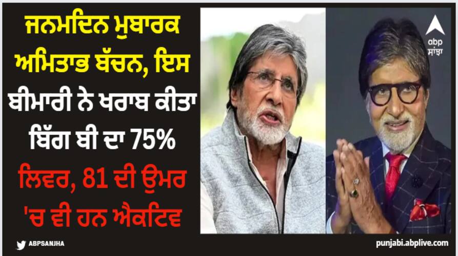 75 ਪਰਸੈਂਟ ਲਿਵਰ (ਜਿਗਰ) ਖਰਾਬਅਮਿਤਾਭ ਬੱਚਨ ਨਾਲ 'ਕੁਲੀ' ਫਿਲਮ ਦੌਰਾਨ ਸੈੱਟ 'ਤੇ ਇੱਕ ਬੁਰਾ ਹਾਦਸਾ ਹੋਇਆ ਸੀ। ਇਸ ਤੋਂ ਬਾਅਦ ਉਨ੍ਹਾਂ ਦੇ ਜਿਗਰ 'ਤੇ ਬੁਰਾ ਅਸਰ ਪਿਆ। ਅਮਿਤਾਭ ਬੱਚਨ ਇਨਫੈਕਸ਼ਨ ਕਰਕੇ ਹੈਪੇਟਾਇਟਸ ਨਾਮ ਦੀ ਬੀਮਾਰੀ ਦਾ ਸ਼ਿਕਾਰ ਹੋਏ। ਇਸ ਬੀਮਾਰੀ ਨੇ ਅਮਿਤਾਭ ਦਾ 75 ਪਰਸੈਂਟ ਲਿਵਰ ਖਰਾਬ ਕਰ ਦਿੱਤਾ। ਅਮਿਤਾਭ ਬੱਚਨ ਸਿਰਫ 25 ਫੀਸਦੀ ਲਿਵਰ 'ਤੇ ਹੀ ਜ਼ਿੰਦਾ ਹਨ।