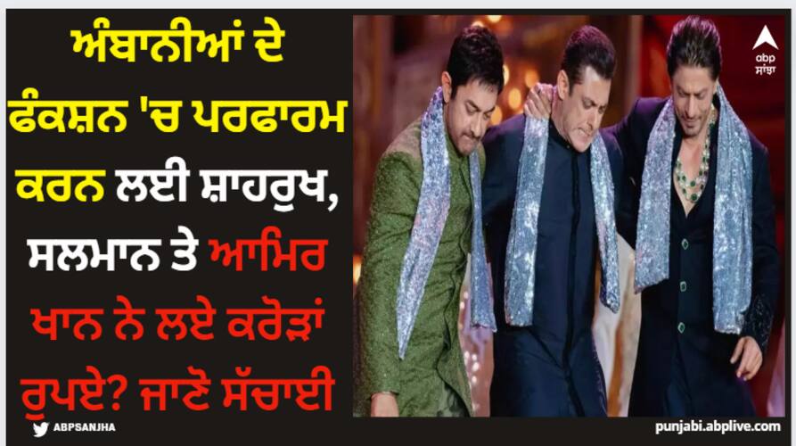 ਕੀ ਅੰਬਾਨੀ ਦੇ ਫੰਕਸ਼ਨ 'ਚ ਤਿੰਨੋਂ ਖਾਨ ਨੇ ਕਰੋੜਾਂ ਰੁਪਏ ਲੈਕੇ ਡਾਂਸ ਕੀਤਾ?ਸੋਸ਼ਲ ਮੀਡੀਆ 'ਤੇ ਕਈ ਦਾਅਵੇ ਕੀਤੇ ਜਾ ਰਹੇ ਸਨ ਕਿ ਤਿੰਨਾਂ ਖਾਨਾਂ ਨੂੰ ਅੰਬਾਨੀ ਦੀ ਪਾਰਟੀ 'ਚ ਪਰਫਾਰਮ ਕਰਨ ਲਈ ਮੋਟੀ ਰਕਮ ਦਿੱਤੀ ਗਈ ਸੀ। ਪਰ ਅੱਜ ਅਸੀਂ ਤੁਹਾਨੂੰ ਇਸ ਦੇ ਪਿੱਛੇ ਦੀ ਸੱਚਾਈ ਦੱਸਣ ਜਾ ਰਹੇ ਹਾਂ, ਜਿਸ ਨੂੰ ਸੁਣ ਕੇ ਤੁਸੀਂ ਸਾਰੇ ਹੈਰਾਨ ਰਹਿ ਜਾਓਗੇ।