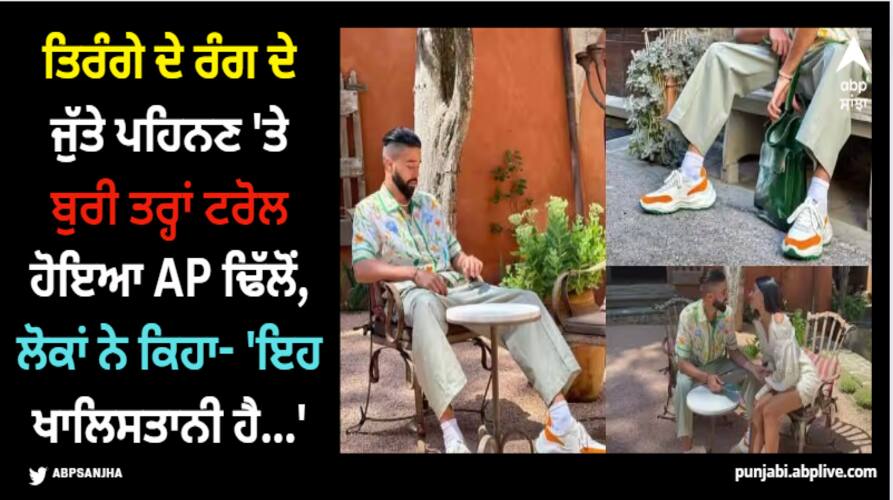 AP Dhillon Trolled For Tiranga Shoes: ਕੈਨੇਡੀਅਨ ਗਾਇਕ ਅਤੇ ਰੈਪਰ ਏ.ਪੀ ਢਿੱਲੋਂ ਦੀ ਬਹੁਤ ਵੱਡੀ ਫੈਨ ਫਾਲੋਇੰਗ ਹੈ ਅਤੇ ਲੋਕ ਉਸ ਦੇ ਲੁੱਕ ਦੇ ਨਾਲ-ਨਾਲ ਉਸ ਦੇ ਗੀਤਾਂ ਦੇ ਵੀ ਦੀਵਾਨੇ ਹਨ। ਪਰ ਇਸ ਵਾਰ ਉਹ ਸਿਰਫ ਆਪਣੇ ਲੁੱਕ ਲਈ ਟ੍ਰੋਲ ਹੋ ਰਿਹਾ ਹੈ। ਸੁਤੰਤਰਤਾ ਦਿਵਸ ਮੌਕੇ ਤਿਰੰਗੇ ਦੇ ਕੱਪੜੇ ਪਹਿਨਣ ਦਾ ਟਰੈਂਡ ਹਰ ਕੋਈ ਫਾਲੋ ਕਰਦਾ ਹੈ ਪਰ ਏਪੀ ਢਿੱਲੋਂ ਨੇ ਅਜਿਹਾ ਪਹਿਨਿਆ ਕਿ ਉਹ ਟ੍ਰੋਲਸ ਦੇ ਨਿਸ਼ਾਨੇ 'ਤੇ ਆ ਗਿਆ ਹੈ।