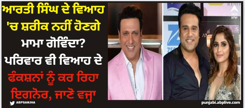ਪਰ ਅਜਿਹਾ ਲੱਗਦਾ ਹੈ ਕਿ ਗੋਵਿੰਦਾ ਜਾਂ ਉਨ੍ਹਾਂ ਦੇ ਪਰਿਵਾਰਕ ਮੈਂਬਰਾਂ ਨੇ ਆਰਤੀ ਸਿੰਘ ਦੇ ਪ੍ਰੀ-ਵੈਡਿੰਗ ਬੈਸ਼ ਤੋਂ ਦੂਰੀ ਬਣਾ ਰੱਖੀ ਹੈ। ਹਾਲ ਹੀ 'ਚ ਜਿੱਥੇ ਇੱਕ ਪਾਸੇ ਆਰਤੀ ਸਿੰਘ ਦਾ ਸੰਗੀਤ ਫੰਕਸ਼ਨ ਹੋਇਆ, ਉੱਥੇ ਹੀ ਦੂਜੇ ਪਾਸੇ ਗੋਵਿੰਦਾ ਦੀ ਬੇਟੀ ਟੀਨਾ ਆਹੂਜਾ ਮੁੰਬਈ ਦੇ ਸਿੱਧੀਵਿਨਾਇਕ ਮੰਦਰ ਦੇ ਦਰਸ਼ਨ ਕਰ ਰਹੀ ਹੈ। ਟੀਨਾ ਨੂੰ ਮੰਦਰ ਜਾਂਦੀ ਦੇਖ ਕੇ ਹਰ ਕਿਸੇ ਦੇ ਦਿਮਾਗ 'ਚ ਇਹੀ ਸਵਾਲ ਆ ਰਿਹਾ ਹੈ ਕਿ ਗੋਵਿੰਦਾ ਦੀ ਬੇਟੀ ਟੀਨਾ ਆਰਤੀ ਸਿੰਘ ਦੇ ਫੰਕਸ਼ਨ 'ਚ ਕਿਉਂ ਨਹੀਂ ਗਈ।