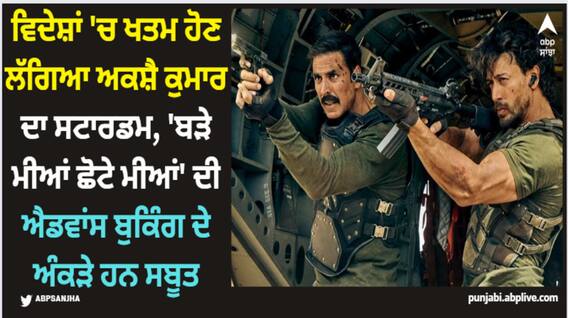 Bade Miyan Chote Miyan Advance Booking: ਅਕਸ਼ੈ ਕੁਮਾਰ ਅਤੇ ਟਾਈਗਰ ਸ਼ਰਾਫ ਦੀ ਫਿਲਮ 'ਬੜੇ ਮੀਆਂ ਛੋਟੇ ਮੀਆਂ' ਈਦ ਦੇ ਮੌਕੇ 'ਤੇ ਸਿਨੇਮਾਘਰਾਂ 'ਚ ਰਿਲੀਜ਼ ਹੋਣ ਜਾ ਰਹੀ ਹੈ। ਹਰ ਸਾਲ ਈਦ 'ਤੇ ਪ੍ਰਸ਼ੰਸਕ ਇਸ ਫਿਲਮ ਦਾ ਬੇਸਬਰੀ ਨਾਲ ਇੰਤਜ਼ਾਰ ਕਰਦੇ ਹਨ। ਫਿਲਮ ਦੇ ਰਿਲੀਜ਼ ਹੋਣ 'ਚ ਦੋ ਦਿਨ ਬਾਕੀ ਹਨ ਅਤੇ ਇਸ ਦੀ ਐਡਵਾਂਸ ਬੁਕਿੰਗ ਪੂਰੇ ਜ਼ੋਰਾਂ 'ਤੇ ਚੱਲ ਰਹੀ ਹੈ। ਭਾਰਤ ਵਿੱਚ ਫਿਲਮਾਂ ਦੀ ਐਡਵਾਂਸ ਬੁਕਿੰਗ ਚੰਗੀ ਹੋ ਰਹੀ ਹੈ ਪਰ ਵਿਦੇਸ਼ੀ ਫਿਲਮਾਂ ਸੰਘਰਸ਼ ਕਰ ਰਹੀਆਂ ਹਨ। ਰਿਪੋਰਟਾਂ ਦੀ ਮੰਨੀਏ ਤਾਂ ਬੜੇ ਮੀਆਂ ਛੋਟੇ ਮੀਆਂ ਅਮਰੀਕਾ ਵਿੱਚ ਕੋਈ ਖਾਸ ਰੁਝਾਨ ਨਹੀਂ ਦਿਖਾ ਰਿਹਾ ਹੈ।
