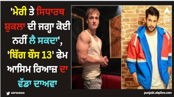 Asim Riaz On Sidharth Shukla: ਆਸਿਮ ਰਿਆਜ਼ ਮਨੋਰੰਜਨ ਜਗਤ ਦਾ ਮਸ਼ਹੂਰ ਨਾਂ ਹੈ। ਆਸਿਮ ਨੇ ਇੱਕ ਐਕਟਰ, ਮਾਡਲ ਅਤੇ ਰੈਪਰ ਦੇ ਤੌਰ 'ਤੇ ਆਪਣੀ ਪਛਾਣ ਬਣਾਈ ਹੈ। ਉਹ ਕਈ ਮਿਊਜ਼ਿਕ ਵੀਡੀਓਜ਼ ਵਿੱਚ ਨਜ਼ਰ ਆ ਚੁੱਕੇ ਹਨ।ਆਸਿਮ ਨੇ ਬਿੱਗ ਬੌਸ 13 ਦੌਰਾਨ ਵੀ ਕਾਫੀ ਸੁਰਖੀਆਂ ਬਟੋਰੀਆਂ ਸਨ। ਖਾਸ ਤੌਰ 'ਤੇ ਆਸਿਮ ਰਿਆਜ਼ ਅਤੇ ਸਿਧਾਰਥ ਸ਼ੁਕਲਾ ਦੀ ਦੋਸਤੀ ਅਤੇ ਫਿਰ ਨਫਰਤ ਨੇ ਸ਼ੋਅ ਨੂੰ ਕਾਫੀ ਪ੍ਰਸਿੱਧੀ ਦਿੱਤੀ ਸੀ। ਹਾਲ ਹੀ 'ਚ ਇਕ ਮਿਊਜ਼ਿਕ ਈਵੈਂਟ 'ਚ ਆਸਿਮ ਰਿਆਜ਼ ਨੇ ਮਰਹੂਮ ਐਕਟਰ ਸਿਧਾਰਥ ਸ਼ੁਕਲਾ ਨੂੰ ਯਾਦ ਕੀਤਾ। ਉਸ ਨੇ ਇਹ ਵੀ ਦਾਅਵਾ ਕੀਤਾ ਕਿ ਸਿਧਾਰਥ ਦੀ ਜਗ੍ਹਾ ਕੋਈ ਨਹੀਂ ਲੈ ਸਕਦਾ।