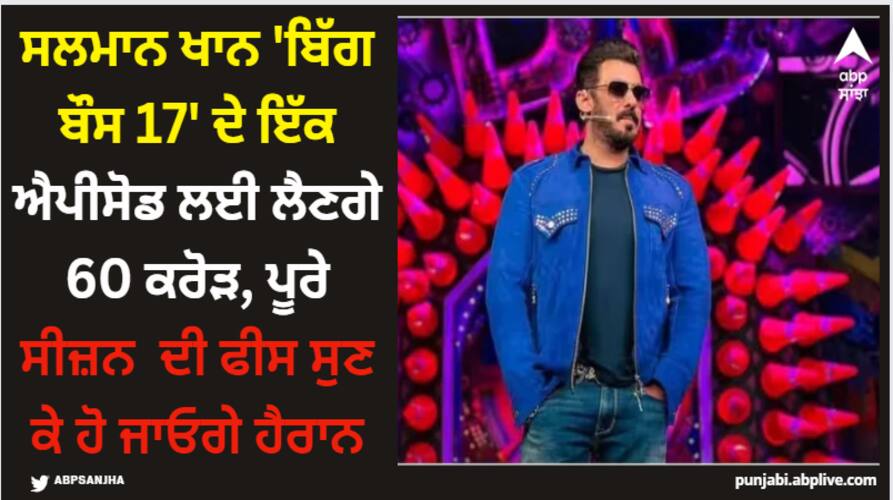 Bigg Boss 17 Salman Khan Fees: ਭਾਰਤੀ ਟੈਲੀਵਿਜ਼ਨ ਦੇ ਸਭ ਤੋਂ ਮਸ਼ਹੂਰ ਅਤੇ ਵਿਵਾਦਪੂਰਨ ਰਿਐਲਿਟੀ ਸ਼ੋਅ ਬਿੱਗ ਬੌਸ 17 ਦੇ ਗ੍ਰੈਂਡ ਪ੍ਰੀਮੀਅਰ ਲਈ ਕਾਊਂਟਡਾਊਨ ਸ਼ੁਰੂ ਹੋ ਗਿਆ ਹੈ। ਸੁਪਰਸਟਾਰ ਸਲਮਾਨ ਖਾਨ ਦੁਆਰਾ ਹੋਸਟ ਕੀਤਾ ਗਿਆ, ਇਹ ਸ਼ੋਅ 14 ਅਕਤੂਬਰ ਨੂੰ ਕਲਰਜ਼ ਟੀਵੀ 'ਤੇ ਪ੍ਰਸਾਰਿਤ ਹੋਵੇਗਾ ਅਤੇ ਪ੍ਰਸ਼ੰਸਕ ਪੂਰੀ ਉਤਸੁਕਤਾ ਨਾਲ ਉਡੀਕ ਕਰ ਰਹੇ ਹਨ ਕਿ ਇਹ ਇਸ ਸਾਲ ਕੀ ਡਰਾਮਾ ਅਤੇ ਮਨੋਰੰਜਨ ਲੈ ਕੇ ਆਵੇਗਾ।
