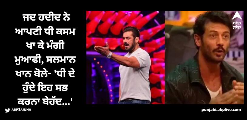 ਵੀਡੀਓ 'ਚ ਜਦ ਹਦੀਦ ਭਾਈਜਾਨ ਸਲਮਾਨ ਸਾਹਮਣੇ ਹੱਥ ਜੋੜ ਕੇ ਖੜਾ ਹੈ। ਉਹ ਸਲਮਾਨ ਖਾਨ ਨੂੰ ਕਹਿੰਦਾ ਨਜ਼ਰ ਆ ਰਿਹਾ ਹੈ, 'ਮੈਂ ਆਪਣੀ ਧੀ ਦੀ ਕਸਮ ਖਾ ਕੇ ਕਹਿੰਦਾ ਹਾਂ ਕਿ ਮੈਂ ਬਹੁਤ ਸ਼ਰਮਿੰਦਾ ਹਾਂ ਅਤੇ ਮੁਆਫੀ ਮੰਗਦਾ ਹਾਂ।' ਇਸ 'ਤੇ ਸਲਮਾਨ ਖਾਨ ਹੈਰਾਨ ਪਰੇਸ਼ਾਨ ਹੋ ਜਾਂਦੇ ਹਨ, ਕਿਉਂਕਿ ਉਨ੍ਹਾਂ ਨੂੰ ਪਤਾ ਨਹੀਂ ਸੀ ਕਿ ਜਦ ਹਦੀਦ ਦੀ ਬੇਟੀ ਵੀ ਹੈ। ਇਸ ਤੋਂ ਬਾਅਦ ਸਲਮਾਨ ਖਾਨ ਕਹਿੰਦੇ ਹਨ ਕਿ ਇਹ ਸਭ ਕਰਨ ਤੋਂ ਪਹਿਲਾਂ ਆਪਣੀ ਧੀ ਬਾਰੇ ਹੀ ਸੋਚ ਲਿਆ ਹੁੰਦਾ। ਫਿਰ ਹਦੀਦ ਕਹਿੰਦਾ ਹੈ ਕਿ ਉਸ ਦਾ ਤਲਾਕ ਹੋ ਚੁੱਕਿਆ ਹੈ। ਇਸ ਤੋਂ ਬਾਅਦ ਸਲਮਾਨ ਖਾਨ ਕਹਿੰਦੇ ਹਨ, 'ਪਰ ਤੁਹਾਡੀ ਬੇਟੀ ਤਾਂ ਹੈ ਨਾ!'। ਇਸ ਤੋਂ ਬਾਅਦ ਫਿਰ ਸਲਮਾਨ ਬੋਲਦੇ ਹਨ ਕਿ ਆਪਣੀ ਬੇਟੀ ਦੀ ਖਾਤਰ ਇਹ ਸਭ ਨਾ ਕਰੋ। ਇਸ ਵੀਡੀਓ ਨੂੰ ਦੇਖ ਕੇ ਯੂਜ਼ਰਸ ਭਾਈਜਾਨ ਦੀ ਤਾਰੀਫ ਕਰਦੇ ਥੱਕ ਨਹੀਂ ਰਹੇ। ਤੁਸੀਂ ਵੀ ਦੇਖੋ: