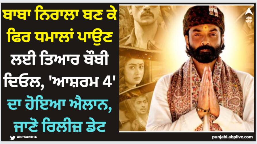 Aashram 4 Release Date: ਬਾਲੀਵੁੱਡ ਐਕਟਰ ਬੌਬੀ ਦਿਓਲ ਇਨ੍ਹੀਂ ਦਿਨੀਂ ਸੁਰਖੀਆਂ 'ਚ ਹਨ। 'ਐਨੀਮਲ' 'ਚ ਅਬਰਾਰ ਤੋਂ ਬਾਅਦ ਹੁਣ ਇਹ ਅਦਾਕਾਰ ਇਕ ਵਾਰ ਫਿਰ ਬਾਬਾ ਨਿਰਾਲਾ ਦੇ ਕਿਰਦਾਰ 'ਚ ਵਾਪਸੀ ਕਰ ਰਿਹਾ ਹੈ। ਬੌਬੀ ਦਿਓਲ ਦੀ ਮਸ਼ਹੂਰ ਵੈੱਬ ਸੀਰੀਜ਼ ਆਸ਼ਰਮ ਦੇ ਪਹਿਲੇ 3 ਸੀਜ਼ਨ ਆ ਚੁੱਕੇ ਹਨ। ਇਸ ਦੇ ਨਾਲ ਹੀ ਹੁਣ ਇਸ ਸੀਰੀਜ਼ ਦਾ ਚੌਥਾ ਸੀਜ਼ਨ ਆਉਣ ਵਾਲਾ ਹੈ। ਪ੍ਰਸ਼ੰਸਕ ਇਸ ਸੀਜ਼ਨ ਦਾ ਬੇਸਬਰੀ ਨਾਲ ਇੰਤਜ਼ਾਰ ਕਰ ਰਹੇ ਹਨ। ਇਸ ਦੌਰਾਨ ਆਸ਼ਰਮ 4 ਦੀ ਰਿਲੀਜ਼ ਨੂੰ ਲੈ ਕੇ ਵੱਡਾ ਅਪਡੇਟ ਸਾਹਮਣੇ ਆਇਆ ਹੈ।