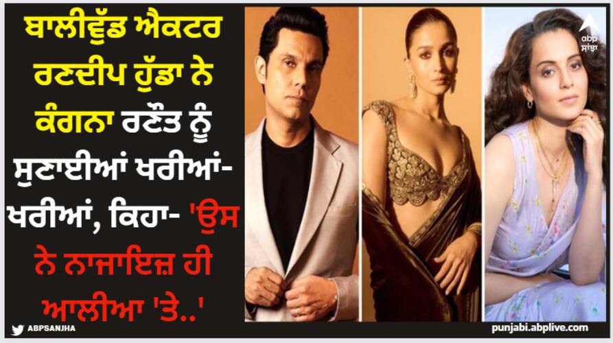 Randeep Hooda Support Alia Bhatt: 'ਸਵਤੰਤਰ ਵੀਰ ਸਾਵਰਕਰ' ਸਟਾਰ ਰਣਦੀਪ ਹੁੱਡਾ ਬਾਲੀਵੁੱਡ 'ਚ ਆਪਣੀ ਇਮਾਨਦਾਰੀ ਲਈ ਮਸ਼ਹੂਰ ਹੈ। ਉਹ ਹਮੇਸ਼ਾ ਸੱਚ ਬੋਲਦੇ ਹਨ ਭਾਵੇਂ ਕਿਸੇ ਨੂੰ ਚੰਗਾ ਲੱਗੇ ਜਾਂ ਨਾ। ਹਾਲ ਹੀ 'ਚ ਇਕ ਇੰਟਰਵਿਊ ਦੌਰਾਨ ਰਣਦੀਪ ਹੁੱਡਾ ਫਿਲਮ 'ਹਾਈਵੇ' 'ਚ ਉਨ੍ਹਾਂ ਦੀ ਕੋ-ਸਟਾਰ ਆਲੀਆ ਭੱਟ ਬਾਰੇ ਖੁੱਲ੍ਹ ਕੇ ਗੱਲ ਕਰਦੇ ਨਜ਼ਰ ਆਏ। ਇਸ ਦੇ ਨਾਲ ਹੀ ਉਨ੍ਹਾਂ ਨੇ ਮੀਡੀਆ ਨਾਲ ਕੰਗਨਾ ਰਣੌਤ ਬਾਰੇ ਆਪਣੇ ਵਿਚਾਰ ਵੀ ਸਾਂਝੇ ਕੀਤੇ।