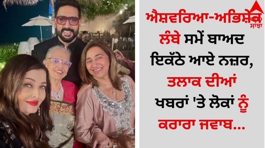 Aishwarya Rai, Abhishek Bachchan Together: ਬਾਲੀਵੁੱਡ ਅਦਾਕਾਰਾ ਐਸ਼ਵਰਿਆ ਰਾਏ ਬੱਚਨ ਅਤੇ ਅਭਿਸ਼ੇਕ ਬੱਚਨ ਦੇ ਪ੍ਰਸ਼ੰਸਕਾਂ ਲਈ ਖਾਸ ਖਬਰ ਸਾਹਮਣੇ ਆ ਰਹੀ ਹੈ। ਦੱਸ ਦੇਈਏ ਕਿ ਇਸ ਜੋੜੇ ਵੱਲੋਂ ਤਲਾਕ ਦੀਆਂ ਖਬਰਾਂ ਉੱਪਰ ਆਖਿਰਕਾਰ ਵਿਰਾਮ ਲਗਾ ਦਿੱਤਾ ਗਿਆ ਹੈ। ਦਰਅਸਲ, ਹਾਲ ਹੀ ਵਿੱਚ ਐਸ਼ ਨੂੰ ਇੱਕ ਪਾਰਟੀ ਵਿੱਚ ਪਤੀ ਅਭਿਸ਼ੇਕ ਨਾਲ ਸੈਲਫੀ ਲੈਂਦੇ ਦੇਖਿਆ ਗਿਆ। ਉਦਯੋਗਪਤੀ ਅਨੁ ਰੰਜਨ ਅਤੇ ਅਦਾਕਾਰਾ ਆਇਸ਼ਾ ਜੁਲਕਾ ਨੇ ਆਪਣੇ ਇੰਸਟਾਗ੍ਰਾਮ ਹੈਂਡਲ 'ਤੇ ਐਸ਼ਵਰਿਆ ਅਤੇ ਅਭਿਸ਼ੇਕ ਦੀਆਂ ਤਸਵੀਰਾਂ ਪੋਸਟ ਕੀਤੀਆਂ ਹਨ।