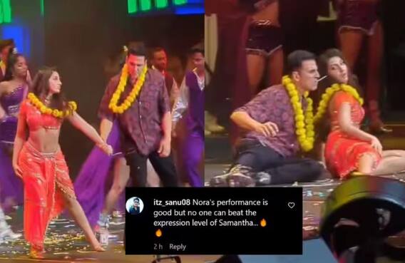ਤੁਸੀਂ ਦੇਖ ਸਕਦੇ ਹੋ ਕਿ ਕਿਵੇਂ ਅਕਸ਼ੇ ਕੁਮਾਰ ਅਤੇ ਨੋਰਾ ਫਤੇਹੀ ਸਟੇਜ 'ਤੇ ਲੇਟਦੇ ਹੋਏ ਓਏ ਅੰਤਾਵਾ ਦਾ ਹੁੱਕ ਸਟੈਪ ਕਰਦੇ ਨਜ਼ਰ ਆ ਰਹੇ ਹਨ। ਅਕਸ਼ੇ ਕੁਮਾਰ ਤੋਂ ਲੈ ਕੇ ਨੋਰਾ ਫਤੇਹੀ ਦੇ ਫੈਨ ਪੇਜ਼ ਇਨ੍ਹਾਂ ਵੀਡੀਓਜ਼ ਨੂੰ ਖੂਬ ਵਾਇਰਲ ਕਰ ਰਹੇ ਹਨ। ਇਸ ਦੌਰਾਨ ਕੁਝ ਲੋਕ ਉਨ੍ਹਾਂ ਦੀਆਂ ਤਾਰੀਫਾਂ ਦੇ ਪੁਲ ਬੰਨ੍ਹਦੇ ਨਜ਼ਰ ਆ ਰਹੇ ਹਨ ਤਾਂ ਕੁਝ ਲੋਕ ਸਮੰਥਾ ਅਤੇ ਅੱਲੂ ਅਰਜੁਨ ਦੀ ਕੈਮਿਸਟਰੀ ਨੂੰ ਭੁੱਲ ਨਹੀਂ ਪਾ ਰਹੇ ਹਨ। ਕਮੈਂਟ ਬਾਕਸ 'ਚ ਇਨ੍ਹਾਂ ਦੋਵਾਂ ਦੇ ਫੈਨਜ਼ ਵਿਚਾਲੇ ਜੰਗ ਦੇਖਣ ਨੂੰ ਮਿਲ ਰਹੀ ਹੈ। ਜਿਸ ਤਰ੍ਹਾਂ ਨਾਲ ਸਾਊਥ ਸਿਨੇਮਾ ਦੀ ਫੈਨ ਫਾਲੋਇੰਗ ਦਿਨ-ਬ-ਦਿਨ ਵੱਧ ਰਹੀ ਹੈ, ਉਸ ਨੂੰ ਦੇਖ ਕੇ ਬਾਲੀਵੁੱਡ ਫੈਨਜ਼ ਨੂੰ ਵੱਡਾ ਝਟਕਾ ਲੱਗ ਰਿਹਾ ਹੈ। ਜਾਂ ਇਹ ਕਹਿ ਲਈਏ ਕਿ ਬਾਲੀਵੁੱਡ ਦੇ ਫੈਨਜ਼ ਵੀ ਹੌਲੀ-ਹੌਲੀ ਸਾਊਥ ਸਿਨੇਮਾ ਦੇ ਫੈਨਜ਼ ਹੁੰਦੇ ਜਾ ਰਹੇ ਹਨ ਤਾਂ ਇਹ ਵੀ ਗਲਤ ਨਹੀਂ ਹੋਵੇਗਾ।
