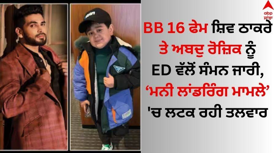 Shiv Thakare-Abdu Rozik: ਬਿੱਗ ਬੌਸ 16 ਵਿੱਚ ਨਜ਼ਰ ਆਏ ਸ਼ਿਵ ਠਾਕਰੇ ਅਤੇ ਅਬਦੁ ਰੋਜ਼ਿਕ ਨੂੰ ਐਨਫੋਰਸਮੈਂਟ ਡਾਇਰੈਕਟੋਰੇਟ (ਈਡੀ) ਨੇ ਸੰਮਨ ਭੇਜਿਆ ਹੈ। ਈਡੀ ਨੇ ਦੋਵਾਂ ਸਿਤਾਰਿਆਂ ਨੂੰ ਮਨੀ ਲਾਂਡਰਿੰਗ ਮਾਮਲੇ 'ਚ ਪੁੱਛਗਿੱਛ ਲਈ ਬੁਲਾਇਆ ਹੈ। ਜੇਲ 'ਚ ਬੰਦ ਡਰੱਗ ਮਾਫੀਆ ਅਲੀ ਅਸਗਰ ਸ਼ਿਰਾਜ਼ੀ ਨਾਲ ਜੁੜੇ ਮਾਮਲੇ 'ਚ ਸ਼ਿਵ ਠਾਕਰੇ ਅਤੇ ਅਬਦੂ ਰੋਜ਼ਿਕ ਨੂੰ ਪੁੱਛਗਿੱਛ ਲਈ ਬੁਲਾਇਆ ਗਿਆ ਹੈ। ਇਸ ਮਾਮਲੇ 'ਚ ਗਵਾਹ ਵਜੋਂ ਸ਼ਿਵ ਠਾਕਰੇ ਦਾ ਬਿਆਨ ਲਿਆ ਜਾ ਰਿਹਾ ਹੈ।