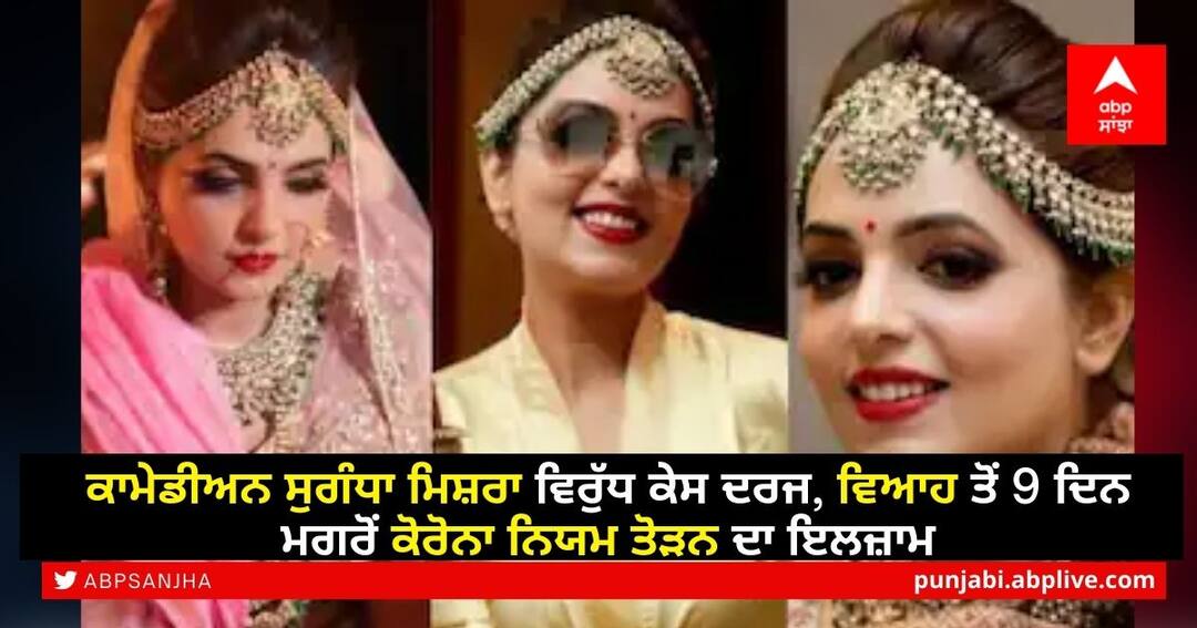 ਫਗਵਾੜਾ: ਨੌਂ ਦਿਨ ਪਹਿਲਾਂ ਵਿਆਹ ਦੇ ਬੰਧਨ 'ਚ ਬੱਝਣ ਵਾਲੀ ਕਾਮੇਡੀਅਨ ਸੁਗੰਧਾ ਮਿਸ਼ਰਾ ਤੇ ਉਸ ਦੇ ਪਤੀ ਵਿਰੁੱਧ ਵੀਰਵਾਰ ਨੂੰ ਫਗਵਾੜਾ 'ਚ ਮਾਮਲਾ ਦਰਜ ਕੀਤਾ ਗਿਆ ਹੈ। ਇਹ ਇਲਜਾਮ ਲਾਇਆ ਗਿਆ ਹੈ ਕਿ ਉਨ੍ਹਾਂ ਦੇ ਵਿਆਹ ਦੌਰਾਨ ਕੋਰੋਨਾ ਨਿਯਮਾਂ ਦੀ ਉਲੰਘਣਾ ਕੀਤੀ ਗਈ ਸੀ। ਥਾਣਾ ਸਦਰ ਫਗਵਾੜਾ ਵਿਖੇ ਸੁਗੰਧਾ ਮਿਸ਼ਰਾ, ਮੁੰਡੇ ਵਾਲਿਆਂ ਤੇ ਕਲੱਬ ਦੇ ਮੈਨੇਜਰ ਵਿਰੁੱਧ ਕੋਵਿਡ ਨਿਯਮਾਂ ਦੀ ਉਲੰਘਣਾ ਦਾ ਕੇਸ ਦਰਜ ਕੀਤਾ ਗਿਆ ਹੈ।