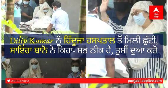 ਹਸਪਤਾਲ ਤੋਂ ਬਾਹਰ ਨਿਕਲਦਿਆਂ ਹੀ ਸਾਇਰਾ ਬਾਨੋ ਨੇ ਏਬੀਪੀ ਨਿਊਜ਼ ਨੂੰ ਦੱਸਿਆ, “ਦਿਲੀਪ ਕੁਮਾਰ ਦੇ ਫੇਫੜੇ ਪੂਰੀ ਤਰ੍ਹਾਂ ਪਾਣੀ ਕੱਢ ਦਿੱਤਾ ਗਿਆ ਹੈ ਅਤੇ ਹੁਣ ਚੰਗੀ ਤਰ੍ਹਾਂ ਆਰਾਮ ਕਰਨ ਤੋਂ ਬਾਅਦ ਉਨ੍ਹਾਂ ਨੂੰ ਛੁੱਟੀ ਦੇ ਦਿੱਤੀ ਗਈ ਹੈ। ਡਾਕਟਰਾਂ ਨੇ ਉਨ੍ਹਾਂ ਨੂੰ ਘਰ ਵਿਚ ਰੱਖਣ ਲਈ ਕਈ ਸਾਵਧਾਨੀਆਂ ਤੇ ਐਂਟੀਬਾਇਓਟਿਕ ਦਵਾਈਆਂ ਵਰਤਣ ਲਈ ਕਿਹਾ ਹੈ। ਤੁਹਾਡੀਆਂ ਸਾਰੀਆਂ ਦੀਆਂ ਦੁਆਵਾਂ ਕੰਮ ਕਰ ਗਈਆਂ, ਤੁਸੀਂ ਲੋਕ ਭਵਿੱਖ ਵਿੱਚ ਵੀ ਉਨ੍ਹਾਂ ਲਈ ਪ੍ਰਾਰਥਨਾ ਕਰੋ। ਮੈਂ ਉਨ੍ਹਾਂ ਸਾਰੇ ਲੋਕਾਂ ਦਾ ਬਹੁਤ ਧੰਨਵਾਦ ਕਰਦੀ ਹਾਂ ਜਿਨ੍ਹਾਂ ਨੇ ਉਨ੍ਹਾਂ ਲਈ ਪ੍ਰਾਰਥਨਾ ਕੀਤੀ।"