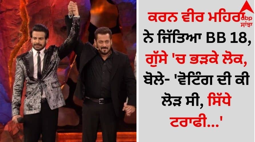 Bigg Boss 18: ਬਿੱਗ ਬੌਸ ਦਾ ਸੀਜ਼ਨ 18 ਆਖਰਕਾਰ ਖਤਮ ਹੋ ਚੁੱਕਿਆ ਹੈ। ਸ਼ੋਅ ਦੇ ਗ੍ਰੈਂਡ ਪ੍ਰੀਮੀਅਰ ਨਾਲ, ਕਰਨ ਵੀਰ ਮਹਿਰਾ ਟਰਾਫੀ ਘਰ ਲੈ ਗਏ ਹਨ। ਕਰਨ ਵੀਰ ਨੇ ਟਰਾਫੀ ਜਿੱਤੀ, ਜਦੋਂ ਕਿ ਵਿਵੀਅਨ ਡਿਸੇਨਾ ਪਹਿਲੇ ਰਨਰਅੱਪ ਰਹੇ। ਕਰਨ ਅਤੇ ਵਿਵੀਅਨ ਦੇ ਨਾਲ, ਅਵਿਨਾਸ਼ ਮਿਸ਼ਰਾ, ਚੁਮ ਦਰੰਗ ਅਤੇ ਈਸ਼ਾ ਸਿੰਘ ਨੇ ਟਾੱਪ 5 ਵਿੱਚ ਜਗ੍ਹਾ ਬਣਾਈ। ਅੰਤ ਤੱਕ ਲੋਕ ਸੋਚ ਰਹੇ ਸਨ ਕਿ ਇਸ ਸੀਜ਼ਨ ਵਿੱਚ ਕੌਣ ਜਿੱਤੇਗਾ। ਆਖਿਰਕਾਰ ਉਨ੍ਹਾਂ ਨੂੰ ਇਸ ਸਵਾਲ ਦਾ ਜਵਾਬ ਮਿਲ ਗਿਆ। ਕੁਝ ਲੋਕ ਕਰਨ ਦੀ ਜਿੱਤ ਦਾ ਜਸ਼ਨ ਮਨਾ ਰਹੇ ਹਨ ਤਾਂ ਕੁਝ ਲੋਕ ਆਪਣਾ ਗੁੱਸਾ ਜ਼ਾਹਰ ਕਰ ਰਹੇ ਹਨ। ਉਨ੍ਹਾਂ ਦੇ ਅਨੁਸਾਰ, ਕਰਨ ਇਸ ਸ਼ੋਅ ਨੂੰ ਜਿੱਤਣ ਦਾ ਹੱਕਦਾਰ ਨਹੀਂ ਸੀ।