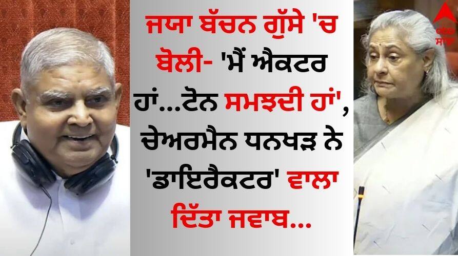 ਦਰਅਸਲ, ਸੰਸਦ ਮੈਂਬਰ ਜਯਾ ਬੱਚਨ ਨੇ ਚੇਅਰਮੈਨ ਜਗਦੀਪ ਧਨਖੜ ਨੂੰ ਕਿਹਾ ਕਿ ਮੈਂ ਇੱਕ ਕਲਾਕਾਰ ਹਾਂ। ਮੈਂ ਬਾੱਡੀ ਲੈਗੁਏਜ਼ ਸਮਝਦੀ ਹਾਂ। ਮੈਂ ਐਕਸਪ੍ਰੈਸ਼ਨ ਨੂੰ ਸਮਝਦੀ ਹਾਂ... ਸਰ, ਕਿਰਪਾ ਕਰਕੇ ਮੈਨੂੰ ਮਾਫ਼ ਕਰੋ, ਪਰ ਤੁਹਾਡਾ ਸੁਰ (Tone) ਠੀਕ ਨਹੀਂ ਹੈ। ਜਯਾ ਬੱਚਨ ਦੀ ਟਿੱਪਣੀ 'ਤੇ ਸਖ਼ਤ ਇਤਰਾਜ਼ ਪ੍ਰਗਟ ਕਰਦੇ ਹੋਏ ਚੈਅਰਮੈਨ ਨੇ ਕਿਹਾ ਕਿ ਤੁਸੀ ਬੈਠ ਜਾਓ। ਸੱਤਾਧਾਰੀ ਪਾਰਟੀ ਨੇ ਜਦੋਂ ਇਸ ਮਾਮਲੇ 'ਤੇ ਸ਼ੋਰ ਮਚਾਇਆ ਤਾਂ ਧਨਖੜ ਨੇ ਕਿਹਾ, 'ਮੈਨੂੰ ਪਤਾ ਹੈ ਕਿ ਇਸ ਨਾਲ ਕਿਵੇਂ ਨਜਿੱਠਣਾ ਹੈ।' ਉਨ੍ਹਾਂ ਨੇ ਕਿਹਾ, 'ਜਯਾ ਜੀ, ਤੁਸੀਂ ਬਹੁਤ ਮਾਣ ਪ੍ਰਾਪਤ ਕੀਤਾ ਹੈ। ਤੁਸੀਂ ਜਾਣਦੇ ਹੋ ਕਿ ਇੱਕ ਅਭਿਨੇਤਾ ਇੱਕ ਨਿਰਦੇਸ਼ਕ ਦਾ ਵਿਸ਼ਾ ਹੁੰਦਾ ਹੈ। ਤੁਸੀਂ ਉਹ ਨਹੀਂ ਦੇਖ ਸਕਦੇ ਜੋ ਮੈਂ ਇੱਥੋਂ ਦੇਖ ਰਿਹਾ ਹਾਂ। ਮੇਰੀ ਸੁਰ, ਮੇਰੀ ਬੋਲੀ, ਮੇਰੇ ਸੁਭਾਅ ਦੀ ਚਰਚਾ ਹੋ ਰਹੀ ਹੈ। ਪਰ ਮੈਂ ਕਿਸੇ ਹੋਰ ਦੀ ਸਕ੍ਰਿਪਟ ਦਾ ਪਾਲਣ ਨਹੀਂ ਕਰਦਾ, ਮੇਰੀ ਆਪਣੀ ਸਕ੍ਰਿਪਟ ਹੈ।