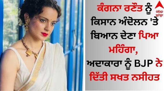 BJP slams Kangana Ranaut: ਕਿਸਾਨ ਅੰਦੋਲਨ 'ਤੇ ਮੰਡੀ ਤੋਂ ਲੋਕ ਸਭਾ ਮੈਂਬਰ ਕੰਗਨਾ ਰਣੌਤ ਦੇ ਬਿਆਨ 'ਤੇ ਭਾਜਪਾ ਨੇ ਅਸਹਿਮਤੀ ਪ੍ਰਗਟਾਈ ਹੈ। ਭਾਜਪਾ ਨੇ ਇੱਕ ਬਿਆਨ ਜਾਰੀ ਕਰਕੇ ਕੰਗਨਾ ਨੂੰ ਭਵਿੱਖ ਵਿੱਚ ਅਜਿਹਾ ਕੋਈ ਬਿਆਨ ਨਾ ਦੇਣ ਦੀ ਸਲਾਹ ਦਿੱਤੀ ਹੈ। ਕੰਗਨਾ ਰਣੌਤ ਨੇ ਹਾਲ ਹੀ ਵਿੱਚ ਕਿਹਾ ਸੀ ਕਿ ਕਿਸਾਨ ਅੰਦੋਲਨ ਵਿੱਚ ਬਲਾਤਕਾਰ ਵਰਗੀਆਂ ਘਟਨਾਵਾਂ ਵਾਪਰ ਰਹੀਆਂ ਸੀ। ਇਸਦੇ ਨਾਲ ਹੀ ਉਨ੍ਹਾਂ ਕਿਹਾ ਕਿ ਅੰਦੋਲਨ ਦੌਰਾਨ ਹਿੰਸਾ ਹੋ ਰਹੀ ਸੀ। ਇਸ ਬਿਆਨ ਤੋਂ ਬਾਅਦ ਕੰਗਨਾ ਰਣੌਤ ਲਗਾਤਾਰ ਨਿਸ਼ਾਨੇ 'ਤੇ ਬਣੀ ਹੋਈ ਹੈ।