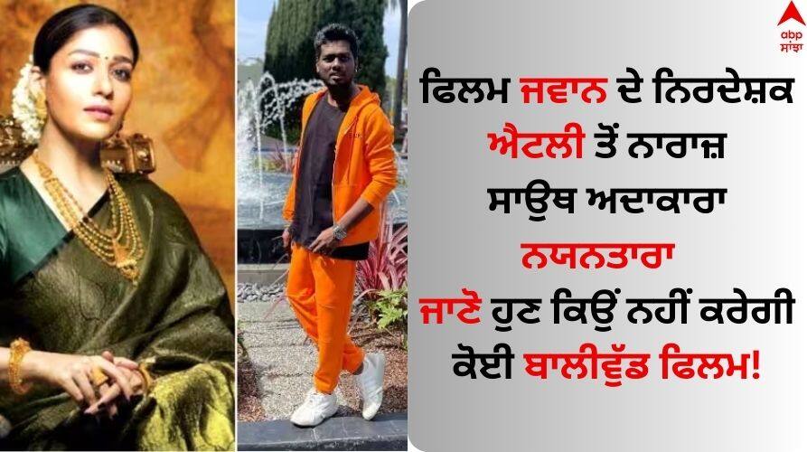 Nayanthara Upset With Atlee Kumar: ਸ਼ਾਹਰੁਖ ਖਾਨ ਦੀ ਫਿਲਮ ਜਵਾਨ ਬਾਕਸ ਆਫਿਸ 'ਤੇ ਧਮਾਲ ਮਚਾ ਰਹੀ ਹੈ। ਫਿਲਮ ਨੂੰ ਪ੍ਰਸ਼ੰਸਕਾਂ ਦਾ ਕਾਫੀ ਪਿਆਰ ਮਿਲ ਰਿਹਾ ਹੈ। ਭਾਰਤ ਵਿੱਚ ਜਵਾਨ ਨੇ 500 ਕਰੋੜ ਰੁਪਏ ਤੋਂ ਵੱਧ ਦੀ ਕਮਾਈ ਕੀਤੀ ਹੈ ਅਤੇ ਇਹ ਕਮਾਈ ਹੋਰ ਵਧਣ ਵਾਲੀ ਹੈ। ਫਿਲਮ ਨੇ 13 ਦਿਨਾਂ 'ਚ ਦੁਨੀਆ ਭਰ 'ਚ 900 ਕਰੋੜ ਰੁਪਏ ਦੀ ਕਮਾਈ ਕਰ ਲਈ ਹੈ। ਨਯਨਤਾਰਾ 'ਜਵਾਨ' 'ਚ ਸ਼ਾਹਰੁਖ ਖਾਨ ਨਾਲ ਮੁੱਖ ਭੂਮਿਕਾ 'ਚ ਨਜ਼ਰ ਆ ਚੁੱਕੀ ਹੈ ਪਰ ਖਬਰਾਂ ਦੀ ਮੰਨੀਏ ਤਾਂ ਉਹ ਆਪਣੇ ਬਾਲੀਵੁੱਡ ਡੈਬਿਊ ਤੋਂ ਖੁਸ਼ ਨਹੀਂ ਹੈ ਅਤੇ ਹੁਣ ਬਾਲੀਵੁੱਡ ਫਿਲਮਾਂ 'ਚ ਕੰਮ ਕਰਨ ਦੇ ਮੂਡ 'ਚ ਨਹੀਂ ਹੈ।
