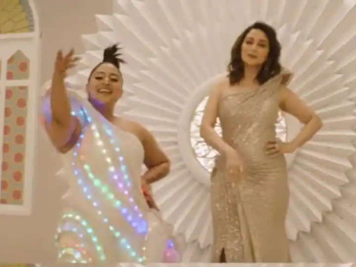 Made in India Song: ਹਿਪ ਹੌਪ ਕੁਈਨ ਰਾਜਾ ਕੁਮਾਰੀ (Raja Kumari) ਅਤੇ ਭਾਰਤ ਦੀ ਪਸੰਦੀਦਾ ਡਾਂਸ ਕੁਈਨ ਮਾਧੁਰੀ ਦੀਕਸ਼ਿਤ ਨੇਨੇ ਇਕੱਠੇ ਛਾ ਗਏ ਹਨ। ਉਨ੍ਹਾਂ ਦਾ ਗਾਣਾ 'ਮੇਡ ਇਨ ਇੰਡੀਆ' ਰਿਲੀਜ਼ ਹੋ ਗਿਆ ਹੈ। ਇਸ ਗਾਣੇ 'ਚ ਰਾਜਾ ਕੁਮਾਰੀ ਅਤੇ ਮਾਧੁਰੀ ਦੀਕਸ਼ਿਤ ਇਕੱਠੇ ਨਜ਼ਰ ਆਏ ਹਨ, ਦੋ ਰਾਣੀਆਂ ਦੇ ਮਿਲਣ 'ਤੇ ਜਾਦੂ ਹੋਣਾ ਤੈਅ ਹੈ। ਦੁਨੀਆ ਭਰ ਦੇ ਭਾਰਤੀਆਂ ਲਈ ਇੱਕ ਐਂਥਮ ਦੇ ਰੂਪ ਵਿੱਚ ਬਣਾਇਆ ਗਿਆ, ਮੇਡ ਇਨ ਇੰਡੀਆ ਇੱਕ ਗ੍ਰੈਮੀ-ਨਾਮਜ਼ਦ ਕਲਾਕਾਰ ਦਾ ਦੇਸ਼ ਦੇ ਸਭ ਤੋਂ ਵਧੀਆ ਫੁੱਟਵੀਅਰ ਡੈਸਟੀਨੇਸ਼ਨ ਮੈਟਰੋ ਸ਼ੂਜ਼ ਨਾਲ ਸਹਿਯੋਗ ਹੈ। ਗਾਣੇ ਦਾ ਟ੍ਰੇਲਰ ਸਾਹਮਣੇ ਆਉਣ ਤੋਂ ਬਾਅਦ ਤੋਂ ਹੀ ਆਰਕੇ ਐਕਸ ਮੈਟਰੋ ਦਾ ਸਹਿਯੋਗ ਸੰਗੀਤ ਪ੍ਰੇਮੀਆਂ ਲਈ ਸੁਰਖੀਆਂ ਵਿੱਚ ਹੈ।
