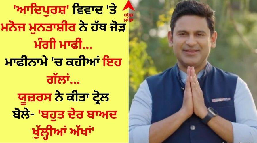 ਇਕ ਹੋਰ ਯੂਜ਼ਰ ਨੇ ਲਿਖਿਆ, ''ਤੁਸੀਂ ਮਾਫੀ ਉਦੋਂ ਮੰਗੀ ਜਦੋਂ ਸਾਰੀਆਂ ਆਕੜ ਢਿੱਲੀ ਹੋਈ। ਜਦੋਂ ਪੂਰਾ ਦੇਸ਼ ਆਦਿਪੁਰਸ਼ 'ਤੇ ਗੁੱਸੇ 'ਚ ਸੀ ਤਾਂ ਤੁਸੀਂ ਬੇਸ਼ਰਮੀ ਨਾਲ 'ਧੰਨਵਾਦ ਮੇਰਾ ਦੇਸ਼' ਲਿਖ ਕੇ ਸੰਗ੍ਰਹਿ ਦਿਖਾ ਰਹੇ ਸੀ। ਉਸ ਤੋਂ ਬਾਅਦ ਆਦਿਪੁਰਸ਼ ਦੇ ਨਿਰਮਾਤਾ ਬੇਸ਼ਰਮੀ ਨਾਲ ਆਪਣੇ ਅਪਰਾਧਾਂ ਦਾ ਬਚਾਅ ਕਰ ਰਹੇ ਸਨ। ਤੁਸੀਂ ਹਿੰਦੂ ਸਮਾਜ ਨੂੰ ਮੂਰਖ ਸਮਝਦੇ ਸੀ। ਤੁਹਾਨੂੰ ਮਹਾਰਿਸ਼ੀ ਵਾਲਮੀਕਿ ਜਾਂ ਤੁਲਸੀ ਬਾਬਾ ਮੰਨ ਕੇ ਤੁਹਾਡੀ ਹਰ ਗੱਲ ਨੂੰ ਸਵੀਕਾਰ ਕਰਨਗੇ। ਪਰ ਜਦੋਂ ਫਿਲਮ ਥੀਏਟਰ ਤੋਂ ਬਾਹਰ ਆ ਗਈ ਹੈ, ਤੁਸੀਂ ਖਰਚੇ ਦੀ ਵਸੂਲੀ ਨਹੀਂ ਕਰ ਸਕੇ, ਤਾਂ ਤੁਸੀਂ ਮੁਆਫੀ ਮੰਗ ਰਹੇ ਹੋ। ਵੈਸੇ, ਕੀ ਇਹ ਆਦਿਪੁਰਸ਼ ਵਿੱਚ ਕੀਤੇ ਗਏ ਅਪਰਾਧਾਂ ਲਈ ਮੁਆਫੀ ਹੈ ਜਾਂ ਤੁਹਾਡੇ ਭਵਿੱਖ ਦੇ ਪ੍ਰੋਜੈਕਟ ਫਲਾਪ ਨਾ ਹੋਣ ਤੋਂ ਬਚਣ ਲਈ ਹੈ? ਅਜਿਹੇ ਕਈ ਹੋਰ ਯੂਜ਼ਰਸ ਨੇ ਮਨੋਜ ਨੂੰ ਟ੍ਰੋਲ ਕੀਤਾ ਹੈ।