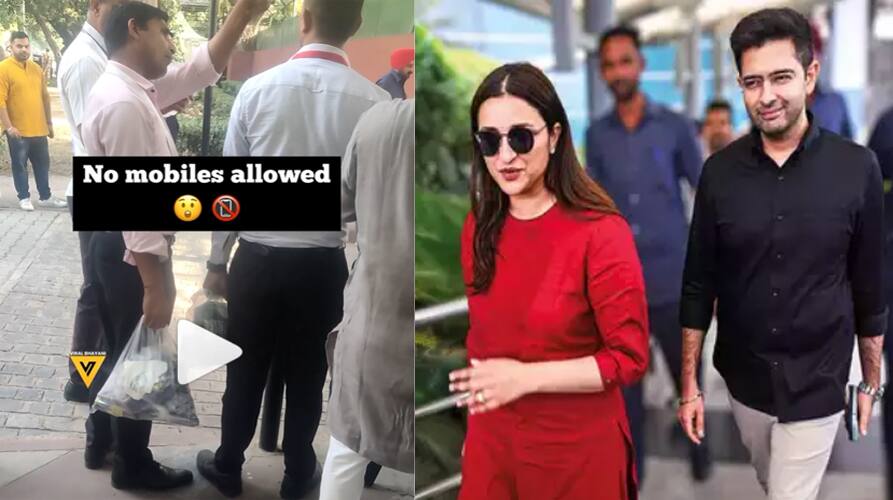 Parineeti Chopra Raghav Chadha Engagement: ਇਨ੍ਹੀਂ ਦਿਨੀਂ ਪਰਿਣੀਤੀ ਚੋਪੜਾ 'ਆਪ' ਨੇਤਾ ਰਾਘਵ ਚੱਢਾ ਨਾਲ ਮੰਗਣੀ ਨੂੰ ਲੈ ਕੇ ਸੁਰਖੀਆਂ 'ਚ ਹਨ। ਪਰਿਣੀਤੀ ਚੋਪੜਾ ਦੀ ਮੰਗਣੀ ਵਿੱਚ ਉਨ੍ਹਾਂ ਦੀ ਭੈਣ ਪ੍ਰਿਯੰਕਾ ਚੋਪੜਾ ਤੋਂ ਲੈ ਕੇ ਕਰਨ ਜੌਹਰ ਤੱਕ ਕਈ ਦਿੱਗਜ ਸ਼ਾਮਲ ਹੋਣਗੇ। ਦੱਸ ਦੇਈਏ ਕਿ ਅੱਜ ਸ਼ਾਮ ਦੋਵੇਂ ਸਿਤਾਰੇ ਮੰਗਣੀ ਦੇ ਬੰਧਨ ਵਿੱਚ ਬੱਝਣ ਜਾ ਰਹੇ ਹਨ। ਇਸ ਦੌਰਾਨ ਕਪੂਰਥਲਾ ਹਾਊਸ ਦੇ ਬਾਹਰ ਫੁੱਲ ਤਿਆਰਿਆਂ ਦਿਖਾਈ ਦੇ ਰਹੀਆਂ ਹਨ। ਇਸ ਵਿਚਕਾਰ ਬਾਹਰ ਦੇ ਦ੍ਰਿਸ਼ ਨੂੰ ਦੇਖ ਇਹ ਵੀ ਕਿਹਾ ਜਾ ਸਕਦਾ ਹੈ ਕਿ ਪਰੀ ਅਤੇ ਰਾਘਵ ਵੱਲੋਂ ਆਪਣੀ ਮੰਗਣੀ ਵਿੱਚ ਮੋਬਾਈਨ ਫੋਨਸ ਲਿਆਉਣ ਦੀ ਇਜ਼ਾਜ਼ਤ ਨਹੀਂ ਦਿੱਤੀ ਗਈ ਹੈ। ਵਾਇਰਲ ਭਿਯਾਨੀ ਦੇ ਪੇਜ਼ ਉੱਪਰ ਸਾਂਝੀ ਕੀਤੀ ਗਈ ਇਹ ਵੀਡੀਓ ਇਸੇ ਗੱਲ ਦਾ ਸਬੂਤ ਹੈ। ਤੁਸੀ ਵੀ ਵੇਖੋ ਇਹ ਵੀਡੀਓ...