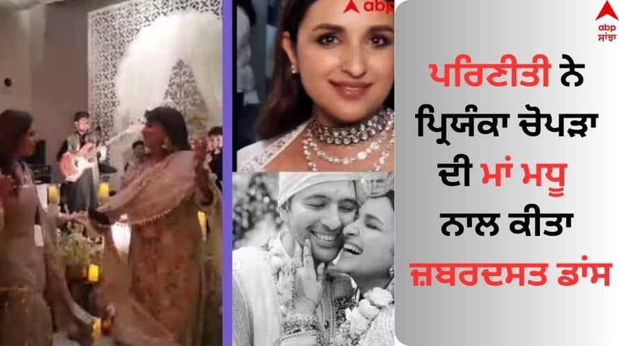 Parineeti Chopra Dance: ਪਰਿਣੀਤੀ ਚੋਪੜਾ ਅਤੇ ਰਾਘਵ ਚੱਢਾ ਦਾ ਵਿਆਹ 24 ਸਤੰਬਰ ਨੂੰ ਲੀਲਾ ਪੈਲੇਸ, ਉਦੈਪੁਰ ਵਿੱਚ ਹੋਇਆ। ਇਸ ਜੋੜੇ ਨੇ ਵਿਆਹ ਤੋਂ ਪਹਿਲਾਂ ਦੀਆਂ ਰਸਮਾਂ ਦਾ ਵੀ ਆਨੰਦ ਮਾਣਿਆ। ਇਨ੍ਹਾਂ 'ਚੋਂ ਇਕ ਸੂਫੀ ਨਾਈਟ ਸੀ, ਜਿਸ 'ਚ ਪ੍ਰਿਯੰਕਾ ਚੋਪੜਾ ਦੀ ਮਾਂ ਮਧੂ ਚੋਪੜਾ ਨੇ ਵੀ ਹਿੱਸਾ ਲਿਆ ਸੀ। ਉਨ੍ਹਾਂ ਦੀ ਸੂਫੀ ਨਾਈਟ ਦਾ ਇੱਕ ਵੀਡੀਓ ਹੁਣ ਇੰਟਰਨੈਟ 'ਤੇ ਸਾਹਮਣੇ ਆਇਆ ਹੈ ਜਿਸ ਵਿੱਚ ਪਰਿਣੀਤੀ ਅਤੇ ਰਾਘਵ ਨੂੰ ਆਪਣੇ ਰਿਸ਼ਤੇਦਾਰਾਂ ਨਾਲ ਤਸਵੀਰਾਂ ਖਿਚਵਾਉਂਦੇ ਦੇਖਿਆ ਜਾ ਸਕਦਾ ਹੈ।