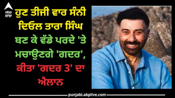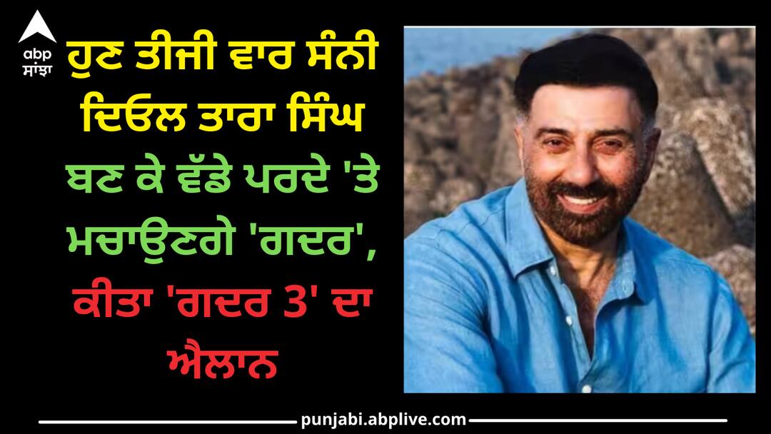 Sunny Deol Gadar 3 Confirm: ਬਾਲੀਵੁੱਡ ਦੀ ਸੁਪਰ ਡੁਪਰ ਹਿੱਟ ਫਿਲਮ 'ਗਦਰ-ਏਕ ਪ੍ਰੇਮ ਕਥਾ' ਨੇ ਬਾਕਸ ਆਫਿਸ 'ਤੇ ਇਤਿਹਾਸ ਰਚ ਦਿੱਤਾ ਸੀ। ਤਾਰਾ ਸਿੰਘ ਦਾ ਕਿਰਦਾਰ ਨਿਭਾਉਣ ਵਾਲੇ ਸੰਨੀ ਦਿਓਲ ਦੀ ਇਹ ਫਿਲਮ ਸਾਲ 2001 'ਚ ਰਿਲੀਜ਼ ਹੋਈ ਸੀ। ਗਦਰ-2 ਇਸ ਫਿਲਮ ਦੀ ਰਿਲੀਜ਼ ਦੇ 22 ਸਾਲ ਬਾਅਦ ਪਿਛਲੇ ਸਾਲ ਰਿਲੀਜ਼ ਹੋਈ ਸੀ।