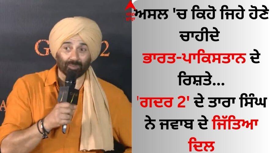 Gadar 2 Trailer Launch: ਸੰਨੀ ਦਿਓਲ ਅਤੇ ਅਮੀਸ਼ਾ ਪਟੇਲ ਦੀ ਫਿਲਮ ਗਦਰ 2 ਦਾ ਟ੍ਰੇਲਰ ਬੁੱਧਵਾਰ ਨੂੰ ਲਾਂਚ ਹੋ ਗਿਆ ਹੈ। ਇਸ ਦੇ ਟ੍ਰੇਲਰ ਲਾਂਚ ਲਈ ਇੱਕ ਵੱਡਾ ਸਮਾਗਮ ਆਯੋਜਿਤ ਕੀਤਾ ਗਿਆ। ਜਿਸ 'ਚ ਪੂਰੀ ਸਟਾਰਕਾਸਟ ਸ਼ਾਮਲ ਹੋਈ। ਗਦਰ 2 ਦੇ ਟ੍ਰੇਲਰ ਨੂੰ ਕਾਫੀ ਪਸੰਦ ਕੀਤਾ ਜਾ ਰਿਹਾ ਹੈ। ਖਾਸ ਗੱਲ ਇਹ ਹੈ ਕਿ ਇਸ ਨੂੰ ਕਾਰਗਿਲ ਵਿਜੇ ਦਿਵਸ 'ਤੇ ਲਾਂਚ ਕੀਤਾ ਗਿਆ। ਟ੍ਰੇਲਰ ਲਾਂਚ ਮੌਕੇ ਸੰਨੀ ਦਿਓਲ ਨੂੰ ਭਾਰਤ-ਪਾਕਿਸਤਾਨ ਸਬੰਧਾਂ ਬਾਰੇ ਸਵਾਲ ਪੁੱਛਿਆ ਗਿਆ। ਸੰਨੀ ਦਿਓਲ ਦਾ ਜਵਾਬ ਸੋਸ਼ਲ ਮੀਡੀਆ 'ਤੇ ਕਾਫੀ ਵਾਇਰਲ ਹੋ ਰਿਹਾ ਹੈ।
