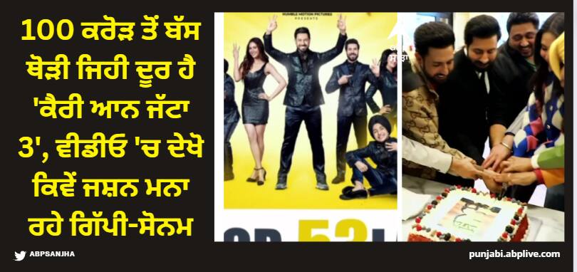Carry On Jatta 3 Box Office Collection: 'ਕੈਰੀ ਆਨ ਜੱਟਾ 3' ਸਫਲਤਾਪੂਰਵਕ ਸਿਨੇਮਾਘਰਾਂ 'ਚ ਪ੍ਰਦਰਸ਼ਨ ਕਰ ਰਹੀ ਹੈ। ਇਹ ਫਿਲਮ ਜਲਦ ਹੀ ਇਤਿਹਾਸ ਰਚਣ ਜਾ ਰਹੀ ਹੈ। ਫਿਲਮ 100 ਕਰੋੜ ਦੇ ਅੰਕੜੇ ਤੋਂ ਬੱਸ ਥੋੜਾ ਜਿਹਾ ਹੀ ਦੂਰ ਹੈ। ਕੈਰੀ ਆਨ ਜੱਟਾ 3 ਨੇ ਪੂਰੀ ਦੁਨੀਆ 'ਚ 98 53 ਲੱਖ ਦੀ ਕਮਾਈ ਕਰ ਲਈ ਹੈ। ਜੀ ਹਾਂ, ਇਸ ਦਾ ਮਤਲਬ ਇਹ ਹੈ ਕਿ ਫਿਲਮ ਨੂੰ 100 ਕਰੋੜ ਦੀ ਕਮਾਈ ਕਰਨ ਲਈ ਮਹਿਜ਼ ਡੇਢ ਕਰੋੜ ਦੀ ਲੋੜ ਹੈ। ਯਾਨਿ ਕਿ ਜਲਦ ਹੀ ਫਿਲਮ 100 ਕਰੋੜ ਦਾ ਅੰਕੜਾ ਛੂਹਣ ਜਾ ਰਹੀ ਹੈ।