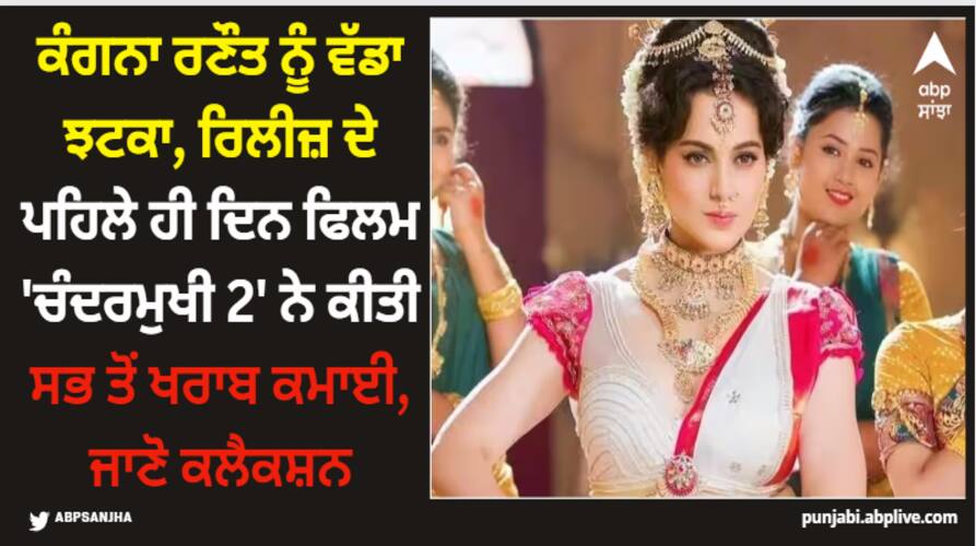 Chandramukhi 2 Box Office Collection Day 1: ਕੰਗਨਾ ਰਣੌਤ ਦੀ 'ਚੰਦਰਮੁਖੀ 2' ਕੱਲ੍ਹ ਸਿਨੇਮਾਘਰਾਂ ਵਿੱਚ ਰਿਲੀਜ਼ ਹੋਈ ਸੀ। 'ਚੰਦਰਮੁਖੀ 2' ਨੂੰ ਫੁਕਰੇ 3 ਅਤੇ ਦ ਵੈਕਸੀਨ ਵਾਰ ਨਾਲ ਟੱਕਰ ਲੈਣੀ ਪਈ। ਸ਼ਾਹਰੁਖ ਖਾਨ ਦੀ 'ਜਵਾਨ' ਅਤੇ 'ਗਦਰ 2' ਪਹਿਲਾਂ ਹੀ ਸਿਨੇਮਾਘਰਾਂ 'ਚ ਧੂਮ ਮਚਾ ਰਹੀਆਂ ਹਨ। ਅਜਿਹੇ 'ਚ ਦਰਸ਼ਕਾਂ ਕੋਲ ਕਈ ਵਿਕਲਪ ਹਨ। ਇਸ ਸਭ ਦੇ ਵਿਚਕਾਰ ਜੇਕਰ 'ਚੰਦਰਮੁਖੀ 2' ਦੀ ਗੱਲ ਕਰੀਏ ਤਾਂ ਦੱਖਣ 'ਚ ਰਾਘਵ ਲਾਰੇਂਸ ਦੀ 'ਚੰਦਰਮੁਖੀ 2' ਨੂੰ ਮਿਲੇ-ਜੁਲੇ ਰਿਵਿਊਜ਼ ਮਿਲੇ ਹਨ। ਇਹ ਫਿਲਮ ਹਿੱਟ ਹੌਰਰ-ਕਾਮੇਡੀ ਫਿਲਮ 'ਚੰਦਰਮੁਖੀ' ਦਾ ਸੀਕਵਲ ਹੈ, ਜਿਸ ਨੂੰ ਹਿੰਦੀ 'ਚ ਵੀ 'ਭੂਲ ਭੁਲਾਇਆ' ਨਾਂ ਨਾਲ ਬਣਾਇਆ ਗਿਆ ਸੀ। ਆਓ ਜਾਣਦੇ ਹਾਂ 'ਚੰਦਰਮੁਖੀ 2' ਨੇ ਆਪਣੀ ਰਿਲੀਜ਼ ਦੇ ਪਹਿਲੇ ਦਿਨ ਕਿੰਨੇ ਕਰੋੜ ਰੁਪਏ ਕਮਾਏ ਹਨ?