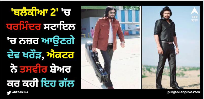 Dev Kharoud In Dharmendra Look: ਦੇਵ ਖਰੌੜ ਪੰਜਾਬੀ ਇੰਡਸਟਰੀ ਦਾ ਉਹ ਨਾਮ ਹੈ, ਜੋ ਕਿਸੇ ਜਾਣ ਪਛਾਣ ਦਾ ਮੋਹਤਾਜ ਨਹੀਂ ਹੈ। ਉਸ ਨੇ ਆਪਣੇ ਫਿਲਮੀ ਕਰੀਅਰ 'ਚ ਇੱਕ ਤੋਂ ਵਧ ਕੇ ਇੱਕ ਹਿੱਟ ਫਿਲਮ ਦਿੱਤੀ ਹੈ। ਉਸ ਨੂੰ ਪੰਜਾਬੀ ਸਿਨੇਮਾ ਦਾ ਐਕਸ਼ਨ ਹੀਰੋ ਵੀ ਕਿਹਾ ਜਾਂਦਾ ਹੈ। ਫਿਲਹਾਲ ਦੇਵ ਖਰੌੜ ਸੁਰਖੀਆਂ 'ਚ ਆ ਗਏ ਹਨ। ਇਸ ਦੀ ਵਜ੍ਹਾ ਹੈ ਉਨ੍ਹਾਂ ਦੀ ਆਉਣ ਵਾਲੀ ਫਿਲਮ 'ਬਲੈਕੀਆ 2'।