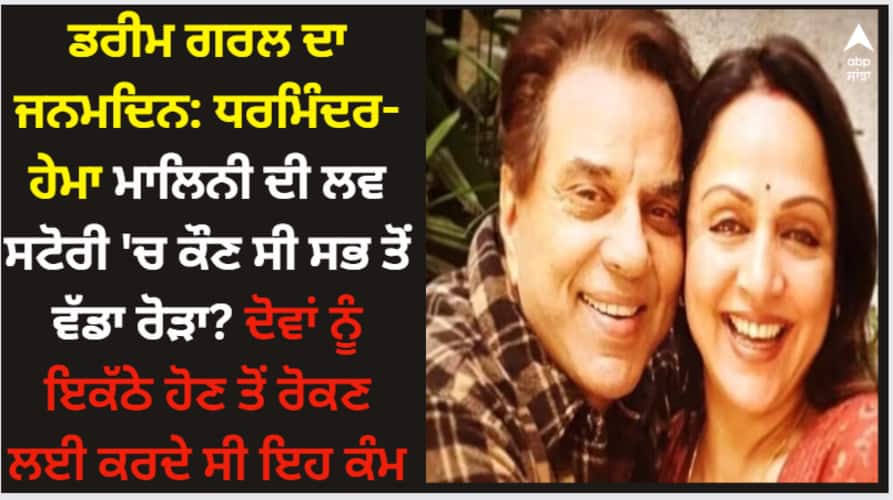Dharmendra Hema Malini Love Story: ਧਰਮਿੰਦਰ ਤੇ ਹੇਮਾ ਮਾਲਿਨੀ ਬਾਲੀਵੁੱਡ ਦੇ ਪਾਵਰ ਕੱਪਲ ਮੰਨੇ ਜਾਂਦੇ ਹਨ। ਦੋਵਾਂ ਨੇ 80 ਦੇ ਦਹਾਕਿਆਂ 'ਚ ਲਵ ਮੈਰਿਜ ਕਰਕੇ ਖੂਬ ਸੁਰਖੀਆਂ ਬਟੋਰੀਆਂ ਸੀ। ਧਰਮਿੰਦਰ ਨੇ ਪਹਿਲੀ ਪਤਨੀ ਪ੍ਰਕਾਸ਼ ਕੌਰ ਨੂੰ ਤਲਾਕ ਦਿੱਤੇ ਬਿਨਾਂ ਹੇਮਾ ਨਾਲ ਦੂਜਾ ਵਿਆਹ ਕੀਤਾ ਸੀ। ਖੈਰ ਇਹ ਕਹਾਣੀ ਤਾਂ ਸਭ ਜਾਣਦੇ ਹਾਂ। ਅੱਜ ਅਸੀਂ ਤੁਹਾਨੂੰ ਧਰਮਿੰਦਰ ਹੇਮਾ ਮਾਲਿਨੀ ਦੀ ਲਵ ਸਟੋਰੀ ਦਾ ਕਿੱਸਾ ਦੱਸਦੇ ਹਾਂ, ਜਿਸ ਨੂੰ ਸੁਣ ਕੇ ਤੁਸੀਂ ਵੀ ਖੂਬ ਹੱਸੋਗੇ।