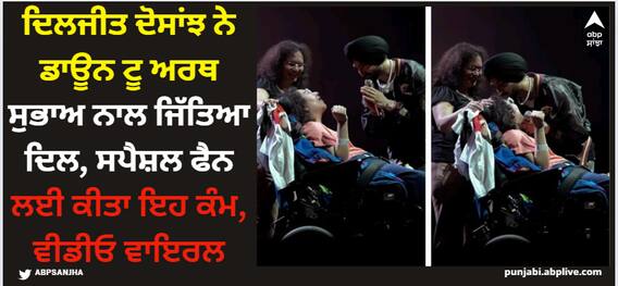 ਦਿਲਜੀਤ ਦੋਸਾਂਝ ਇਸ ਵਾਇਰਲ ਵੀਡੀਓ 'ਚ ਆਪਣੀ ਇੱਕ ਸਪੈਸ਼ਲ ਫੈਨ ਨਾਲ ਨਜ਼ਰ ਆ ਰਹੇ ਹਨ। ਇਹ ਫੈਨ ਵ੍ਹੀਲ ਚੇਅਰ ਹੈ ਤੇ ਦਿਲਜੀਤ ਦੋਸਾਂਝ ਦੇ ਸ਼ੋਅ 'ਚ ਉਨ੍ਹਾਂ ਨੂੰ ਮਿਲਣ ਆਈ ਹੈ। ਦਿਲਜੀਤ ਦੋਸਾਂਝ ਵੀ ਆਪਣੀ ਇਸ ਸਪੈਸ਼ਲ ਫੈਨ ਨੂੰ ਨਿਰਾਸ਼ ਨਹੀਂ ਕਰਦੇ ਅਤੇ ਉਸ ਨੂੰ ਸਟੇਜ 'ਤੇ ਬੁਲਾ ਕੇ ਉਸ ਦਾ ਖੂਬ ਆਦਰ ਸਤਿਕਾਰ ਕਰਦੇ ਹਨ। ਦੇਖੋ ਇਹ ਵੀਡੀਓ: