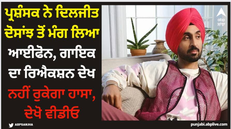 ਇੱਕ ਫੈਨ ਨੇ ਦਿਲਜੀਤ ਨੂੰ ਕਿਹਾ 'ਮੈਨੂੰ ਆਈਫੋਨ ਲੈ ਦਿਓ।' ਅੱਗੋਂ ਜਿਵੇਂ ਦਿਲਜੀਤ ਨੇ ਰਿਐਕਟ ਕੀਤਾ, ਉਸ ਨੂੰ ਦੇਖ ਕੇ ਹਾਸਾ ਰੋਕ ਪਾਉਣਾ ਮੁਸ਼ਕਲ ਹੈ। ਦੇਖੋ ਇਹ ਵੀਡੀਓ: