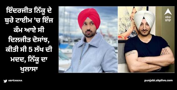 ਹੁਣ ਇੰਦਰਜੀਤ ਨਿੱਕੂ ਨੇ ਹਾਲ ਹੀ 'ਚ ਇੰਟਰਵਿਊ ਦਿੱਤੀ ਸੀ। ਇਸ ਇੰਟਰਵਿਊ ਦੀ ਇੱਕ ਕਲਿੱਪ ਸੋਸ਼ਲ ਮੀਡੀਆ 'ਤੇ ਛਾਈ ਹੋਈ ਹੈ, ਜਿਸ ਵਿੱਚ ਨਿੱਕੂ ਖੁਦ ਆਪਣੇ ਮਾੜੇ ਸਮੇਂ ਬਾਰੇ ਬੋਲਦੇ ਨਜ਼ਰ ਆ ਰਹੇ ਹਨ। ਇਸ ਦੌਰਾਨ ਨਿੱਕੂ ਨੇ ਦਿਲਜੀਤ ਦੋਸਾਂਝ ਬਾਰੇ ਗੱਲ ਕੀਤੀ। ਉਨ੍ਹਾਂ ਨੇ ਕਿਹਾ ਕਿ ਦਿਲਜੀਤ ਦੋਸਾਂਝ ਹੀ ਉਹ ਸ਼ਖਸ ਸੀ, ਜਿਸ ਨੇ ਨਿੱਕੂ ਦੀ ਵੀਡੀਓ ਸਾਹਮਣੇ ਆਉਣ ਤੋਂ ਬਾਅਦ ਉਨ੍ਹਾਂ ਨੂੰ ਮਦਦ ਦੀ ਪੇਸ਼ਕਸ਼ ਕੀਤੀ ਸੀ।
