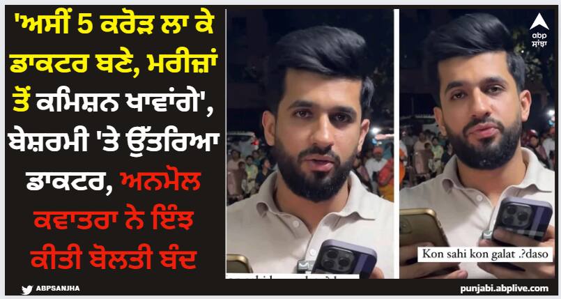 ਬੀਤੇ ਦਿਨੀਂ ਅਨਮੋਲ ਕਵਾਤਰਾ ਇੰਸਟਾਗ੍ਰਾਮ 'ਤੇ ਲਾਈਵ ਹੋਇਆ ਸੀ। ਇਸ ਦੌਰਾਨ ਉਸ ਨੇ ਇੱਕ ਡਾਕਟਰ ਦੀ ਰਿਕਾਰਡਿੰਗ ਸੁਣਾਈ, ਜੋ ਕਿ ਅਨਮੋਲ 'ਤੇ ਸੰਗੀਨ ਇਲਜ਼ਾਮ ਲਗਾ ਰਿਹਾ ਸੀ। ਇਸ ਡਾਕਟਰ ਦੀਆਂ ਗੱਲਾਂ ਤੋਂ ਹੀ ਲਾਲਚ ਦੀ ਬੂ ਆਉਂਦੀ ਹੈ। ਉਸ ਨੇ ਬੇਸ਼ਰਮੀ ਦੇ ਲਹਿਜ਼ੇ 'ਚ ਕਿਹਾ ਕਿ "ਇੱਕ ਆਦਮੀ 5 ਕਰੋੜ ਲਾ ਕੇ ਡਾਕਟਰ ਬਣਦਾ ਹੈ ਤਾਂ ਕੀ ਉਹ ਮਰੀਜ਼ਾਂ ਤੋਂ ਕਮਿਸ਼ਨ ਨਹੀਂ ਖਾ ਸਕਦਾ?" ਇਹ ਉਹੀ ਡਾਕਟਰ ਸੀ ਜਿਸ ਨੇ ਕੁੱਝ ਦਿਨ ਪਹਿਲਾਂ ਇੱਕ ਗਰੀਬ ਔਰਤ ਨੂੰ ਅਲਟਰਾ ਸਾਊਂਡ ਕਰਵਾਉਣ ਲਈ ਕਿਹਾ ਤੇ ਪਰਚੀ 'ਤੇ ਅਲਟਰਾ ਸਾਊਂਡ ਦੀ ਕੀਮਤ 5 ਹਜ਼ਾਰ ਰੁਪਏ ਲਿਖੀ, ਜਦਕਿ ਅਨਮੋਲ ਦਾ ਕਹਿਣਾ ਸੀ ਕਿ ਅਸਲ 'ਚ ਅਲਟਰਾ ਸਾਊਂਡ 1600 ਰੁਪਏ 'ਚ ਹੋ ਜਾਂਦਾ ਹੈ। ਮਹਿਲਾ ਦਾ ਇਹ ਵੀਡੀਓ ਕਾਫੀ ਚਰਚਾ 'ਚ ਰਿਹਾ ਸੀ। ਜਿਸ ਤੋਂ ਬਾਅਦ ਉਸ ਡਾਕਟਰ ਨੇ ਅਨਮੋਲ ਨੂੰ ਮੈਸੇਜ ਭੇਜ ਕੇ ਖਰੀਆਂ ਖਰੀਆਂ ਸੁਣਾਈਆਂ। ਇਸ ਤੋਂ ਅਨਮੋਲ ਨੇ ਇਸ ਡਾਕਟਰ ਦੀ ਬੋਲਤੀ ਕਿਵੇਂ ਬੰਦ ਕੀਤੀ, ਤੁਸੀਂ ਖੁਦ ਦੇਖ ਲਓ: