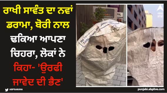 ਰਾਖੀ ਸਾਵੰਤ ਨੇ ਬੋਰੀ ਨਾਲ ਢਕਿਆ ਆਪਣਾ ਚਿਹਰਾਸੋਸ਼ਲ ਮੀਡੀਆ 'ਤੇ ਇਕ ਵੀਡੀਓ ਸਾਹਮਣੇ ਆਈ ਹੈ, ਜਿਸ 'ਚ ਰਾਖੀ ਸਾਵੰਤ ਬੋਰੀ ਪਾਈ ਨਜ਼ਰ ਆ ਰਹੀ ਹੈ। ਉਸ ਨੇ ਆਪਣੇ ਆਪ ਨੂੰ ਬੋਰੀ ਨਾਲ ਢੱਕ ਲਿਆ ਹੈ। ਉਸ ਦਾ ਇਹ ਵੀਡੀਓ ਕਾਫੀ ਵਾਇਰਲ ਹੋ ਰਿਹਾ ਹੈ। ਇਸ ਵੀਡੀਓ 'ਤੇ ਕਮੈਂਟਸ ਦਾ ਹੜ੍ਹ ਆ ਗਿਆ ਹੈ। ਰਾਖੀ ਦੇ ਇਸ ਗੈਟਅੱਪ 'ਤੇ ਯੂਜ਼ਰਸ ਲਗਾਤਾਰ ਕਮੈਂਟ ਕਰ ਰਹੇ ਹਨ। ਅਦਾਕਾਰਾ ਦੇ ਇਸ ਲੁੱਕ 'ਤੇ ਪ੍ਰਸ਼ੰਸਕ ਖੂਬ ਟਿੱਪਣੀਆਂ ਕਰ ਰਹੇ ਹਨ।