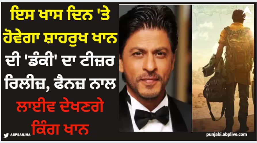 Dunki Teaser Release Date: ਸ਼ਾਹਰੁਖ ਖਾਨ ਇਨ੍ਹੀਂ ਦਿਨੀਂ ਆਪਣੀ ਬਹੁ-ਪ੍ਰਤੀਤ ਫਿਲਮ 'ਡੰਕੀ' ਨੂੰ ਲੈ ਕੇ ਸੁਰਖੀਆਂ 'ਚ ਹਨ। ਹੁਣ ਫਿਲਮ ਨੂੰ ਲੈ ਕੇ ਇਕ ਵੱਡੀ ਖਬਰ ਸਾਹਮਣੇ ਆਈ ਹੈ, ਜਿਸ ਨੂੰ ਸੁਣ ਕੇ ਪ੍ਰਸ਼ੰਸਕ ਖੁਸ਼ੀ ਨਾਲ ਝੂਮ ਉੱਠਣਗੇ। ਦੱਸਿਆ ਜਾ ਰਿਹਾ ਹੈ ਕਿ ਫਿਲਮ ਦਾ ਟੀਜ਼ਰ ਸ਼ਾਹਰੁਖ ਖਾਨ ਦੇ ਜਨਮਦਿਨ 'ਤੇ ਰਿਲੀਜ਼ ਕੀਤਾ ਜਾਵੇਗਾ। ਯਾਨੀ ਡੰਕੀ ਦਾ ਗ੍ਰੈਂਡ ਟੀਜ਼ਰ 2 ਨਵੰਬਰ ਨੂੰ ਲਾਂਚ ਹੋਵੇਗਾ।