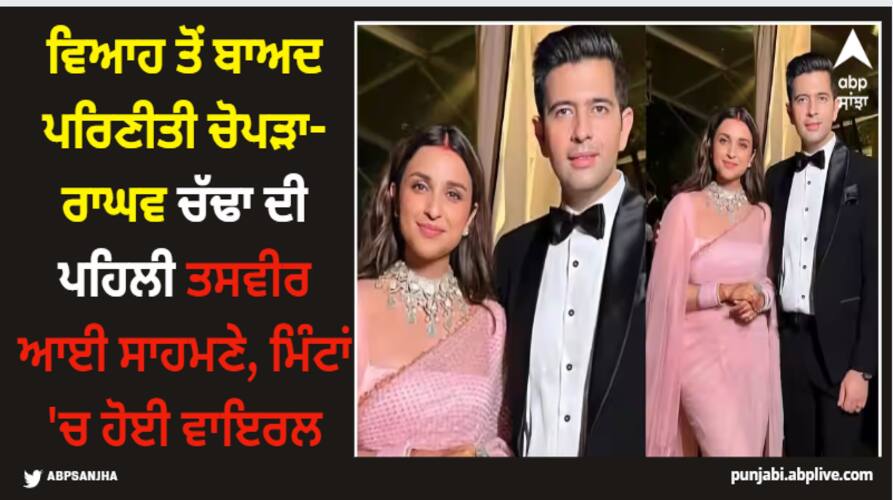 ਵਿਆਹ ਤੋਂ ਬਾਅਦ ਮਿਸਟਰ ਅਤੇ ਮਿਸਿਜ਼ ਚੱਢਾ ਦੀ ਪਹਿਲੀ ਤਸਵੀਰ ਆਈ ਸਾਹਮਣੇਇਸ ਤਸਵੀਰ 'ਚ ਮਿਸਟਰ ਅਤੇ ਮਿਸਿਜ਼ ਚੱਢਾ ਬੇਹੱਦ ਖੂਬਸੂਰਤ ਲੱਗ ਰਹੇ ਹਨ। ਪਰਿਣੀਤੀ ਸਿੰਦੂਰ, ਹੱਥਾਂ ਵਿੱਚ ਚੂੜੀਆਂ ਅਤੇ ਗੁਲਾਬੀ ਸਾੜ੍ਹੀ ਵਿੱਚ ਇੱਕ ਨਵੀਂ ਦੁਲਹਨ ਦੇ ਰੂਪ ;ਚ ਬਹੁਤ ਵਧੀਆ ਲੱਗ ਰਹੀ ਹੈ, ਜਦੋਂ ਕਿ ਰਾਘਵ ਚੱਢਾ ਵੀ ਕਾਲੇ ਸੂਟ ਵਿੱਚ ਕਾਫੀ ਹੈਂਡਸਮ ਨਜ਼ਰ ਆ ਰਿਹਾ ਹੈ।