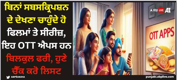 Free OTT Platforms: OTT ਐਪਸ 'ਤੇ ਬਹੁਤ ਸਾਰੀਆਂ ਫਿਲਮਾਂ ਅਤੇ ਸੀਰੀਜ਼ ਹਨ। ਕੋਰੋਨਾ ਤੋਂ ਬਾਅਦ ਇਨ੍ਹਾਂ OTT ਐਪਸ 'ਤੇ ਯੂਜ਼ਰਸ ਦੀ ਗਿਣਤੀ ਵੀ ਤੇਜ਼ੀ ਨਾਲ ਵਧੀ ਹੈ। ਇਸ ਦੇ ਨਾਲ ਹੀ, OTT ਪਲੇਟਫਾਰਮਾਂ ਦੀ ਸਬਸਕ੍ਰਿਪਸ਼ਨ ਵਿੱਚ ਅਕਸਰ ਵਾਧਾ ਹੁੰਦਾ ਹੈ। ਹੁਣ ਜੇਕਰ ਤੁਸੀਂ ਘਰ ਬੈਠੇ ਬੋਰ ਹੋ ਗਏ ਹੋ ਅਤੇ OTT ਪਲੇਟਫਾਰਮ 'ਤੇ ਫਿਲਮਾਂ ਜਾਂ ਸੀਰੀਜ਼ ਦੇਖਣਾ ਚਾਹੁੰਦੇ ਹੋ, ਪਰ ਤੁਹਾਨੂੰ ਉਨ੍ਹਾਂ ਦੀ ਸਬਸਕ੍ਰਿਪਸ਼ਨ ਦੀ ਸਮੱਸਿਆ ਹੈ। ਇਸ ਲਈ ਚਿੰਤਾ ਕਰਨ ਦੀ ਕੋਈ ਲੋੜ ਨਹੀਂ ਹੈ। ਅੱਜ ਅਸੀਂ ਤੁਹਾਨੂੰ ਅਜਿਹੇ OTT ਐਪਸ ਬਾਰੇ ਦੱਸਣ ਜਾ ਰਹੇ ਹਾਂ, ਜਿੱਥੇ ਤੁਸੀਂ ਬਿਨਾਂ ਕਿਸੇ ਸਬਸਕ੍ਰਿਪਸ਼ਨ ਦੇ ਘਰ ਬੈਠੇ ਆਸਾਨੀ ਨਾਲ ਫਿਲਮਾਂ ਅਤੇ ਸੀਰੀਜ਼ ਦੇਖ ਸਕਦੇ ਹੋ।