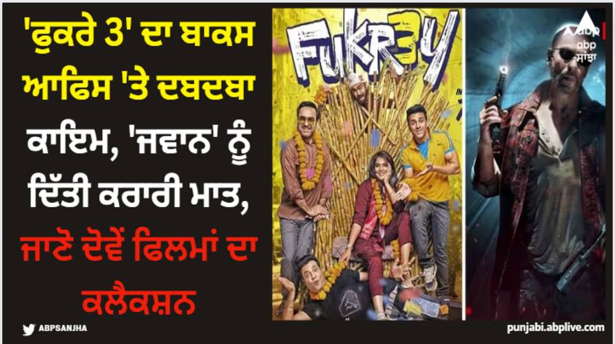 'ਫੁਕਰੇ 3' ਨੇ ਰਿਲੀਜ਼ ਦੇ 5ਵੇਂ ਦਿਨ 11.69 ਕਰੋੜ ਰੁਪਏ ਦੀ ਕਮਾਈ ਕੀਤੀ ਸੀ। ਹੁਣ 6ਵੇਂ ਦਿਨ ਦਾ ਕਲੈਕਸ਼ਨ ਵੀ ਸਾਹਮਣੇ ਆਇਆ ਹੈ। ਰਿਪੋਰਟ ਮੁਤਾਬਕ 'ਫੁਕਰੇ 3' ਮੰਗਲਵਾਰ ਯਾਨੀ 6ਵੇਂ ਦਿਨ 5 ਕਰੋੜ ਰੁਪਏ ਕਮਾ ਸਕਦੀ ਹੈ। ਇਸ ਤਰ੍ਹਾਂ ਫਿਲਮ ਦਾ ਕੁਲ ਕਲੈਕਸ਼ਨ 60.17 ਕਰੋੜ ਰੁਪਏ ਹੋ ਜਾਵੇਗਾ। ਤੁਹਾਨੂੰ ਦੱਸ ਦੇਈਏ ਕਿ ਇਹ ਕਲੈਕਸ਼ਨ ਸ਼ਾਹਰੁਖ ਖਾਨ ਦੀ ਸੁਪਰਹਿੱਟ ਫਿਲਮ 'ਜਵਾਨ' ਦੀ ਕਮਾਈ ਤੋਂ ਜ਼ਿਆਦਾ ਹੈ।